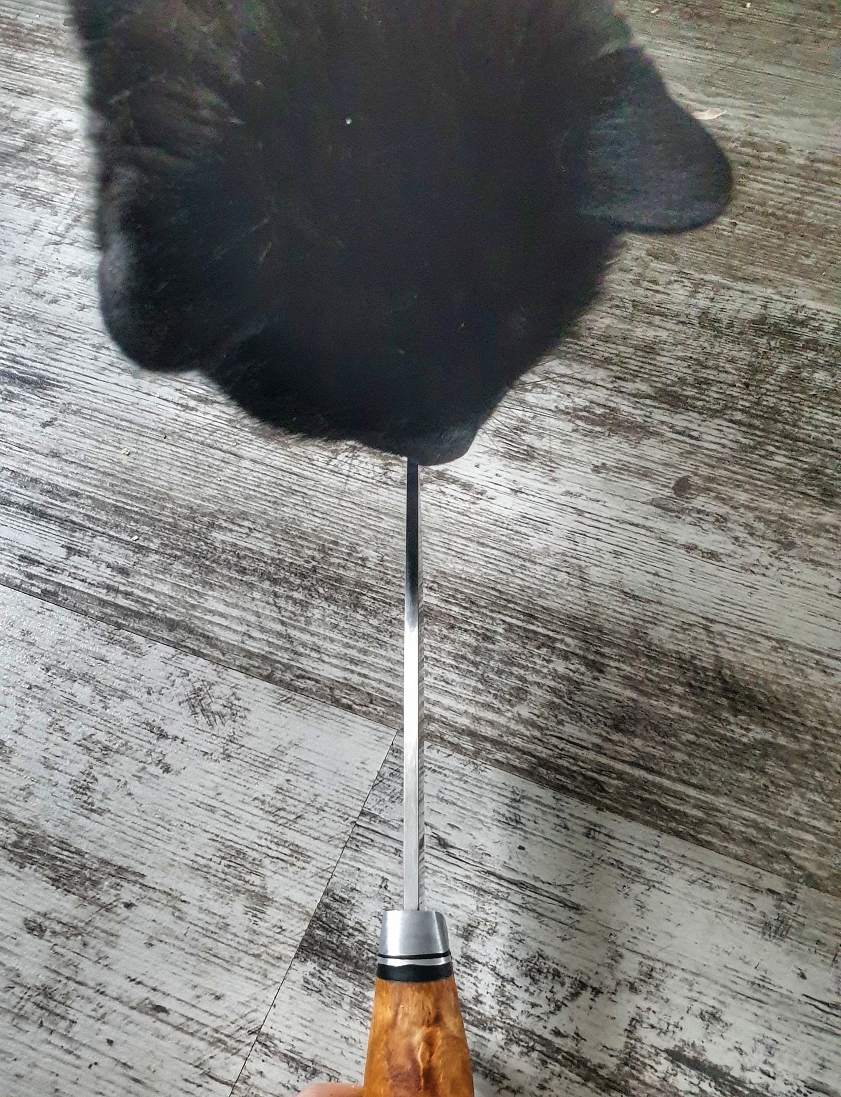 В целом, по качеству сборки самого ножа-на 4. Есть маленький зазор между клинком и гардой, на пяте клинка режущая кромка сведена чуть криво, и сам больстер, почему-то, с одной стороны чуть больше торчит. Но это все мелочи, я так до любого ножа докопаться могу, кроме моего личного и ножей от Кмети.