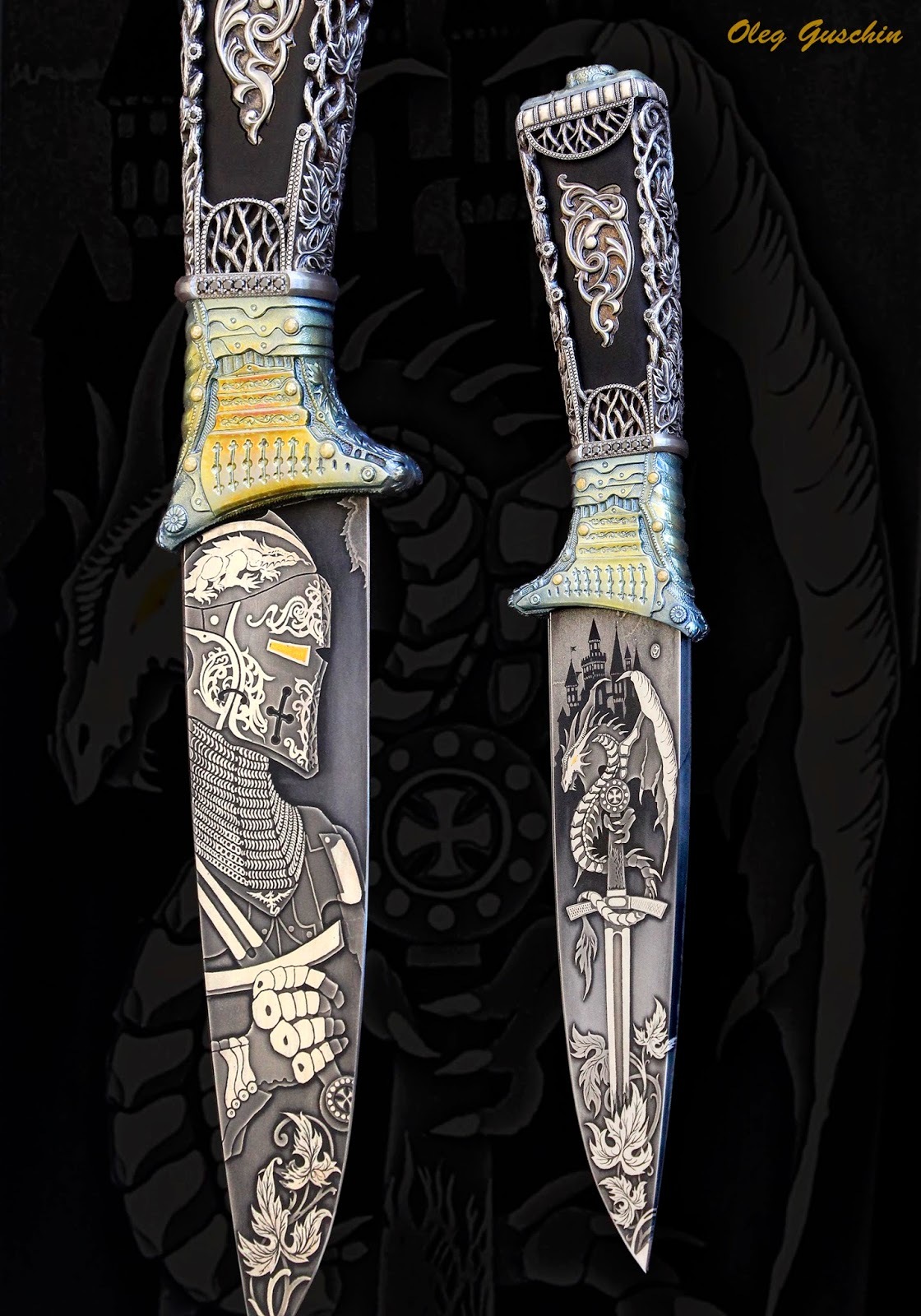 310 cabaye Нож "Рыцарь-Дракон" 8 лет назад Автор Олег Гущин Нож Гравировка Отделка Ремесло Длиннопост