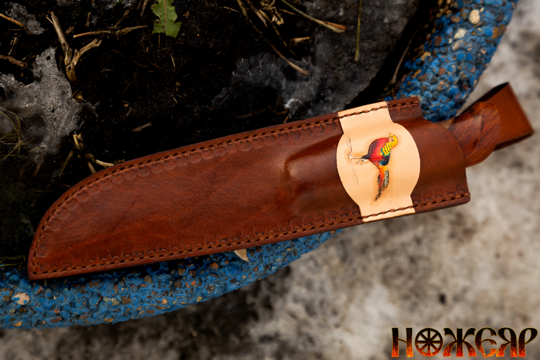 Ножны - натуральная кожа растительного дубления с выполненым вручную тиснением и колорированием водостойкими акриловыми красками