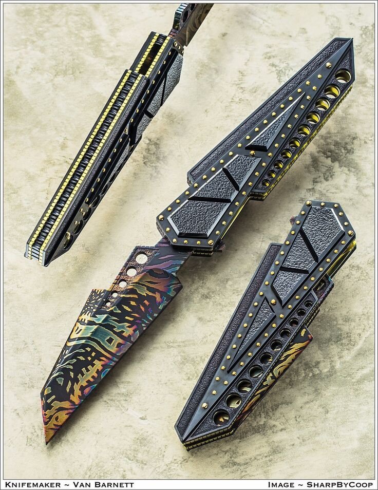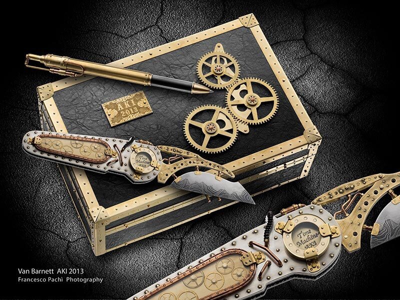 Ван Барнетт специализируется на создании художественных ножей, в том числе складных ножей в визуальном стиле «стимпанк» . Честно говоря, значительную часть изделий этого мастера сложно оценивать с точки зрения функциональности.