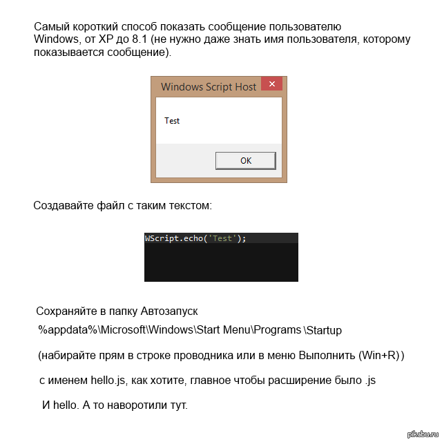 2 galeksandrp Ну что, у кого еще короче? 11 лет назад Продолжим тренд на сообщения в винде [моё] Windows Сообщения Проги
