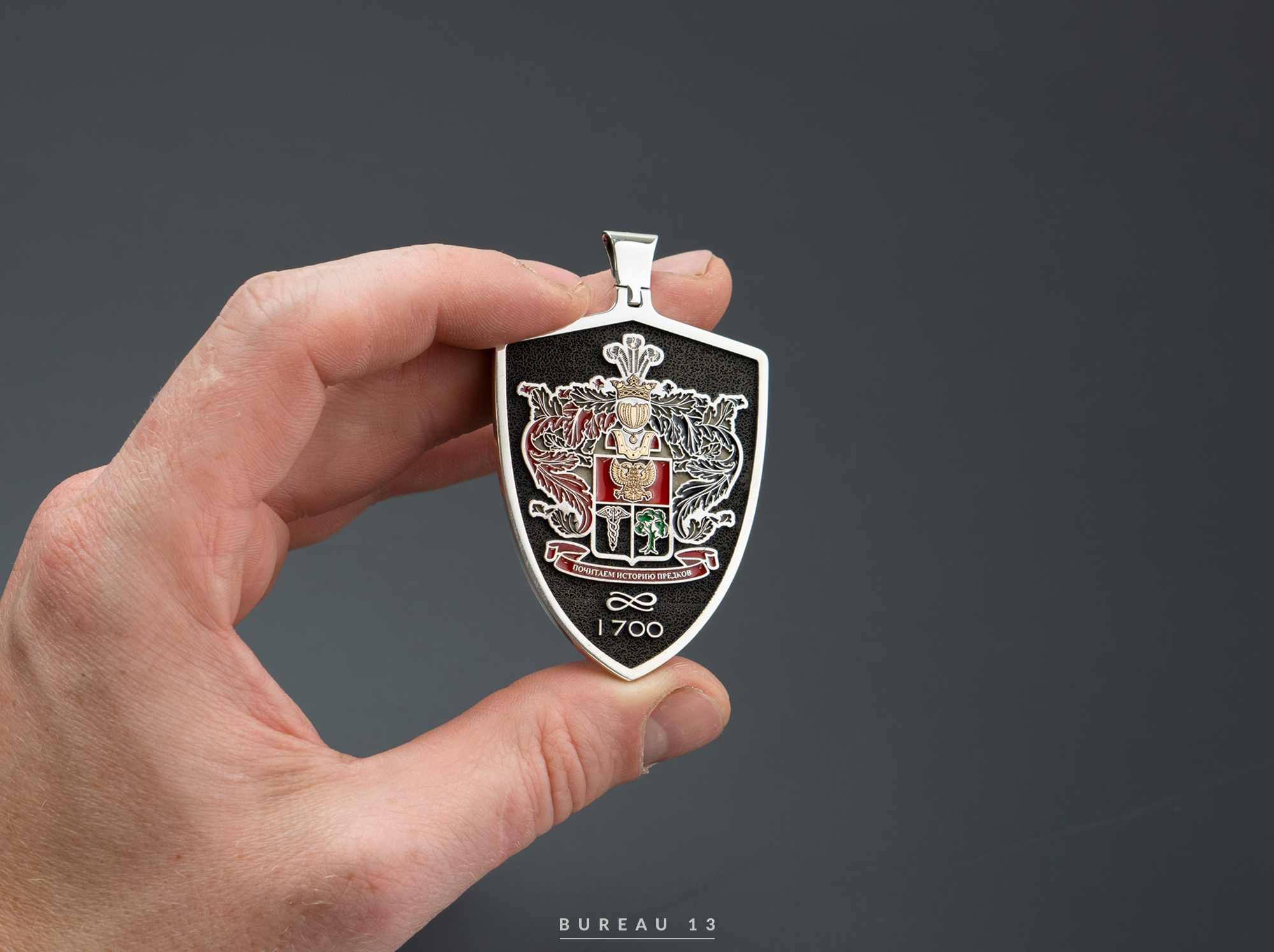 Еще одна семейная реликвия. Задача была придумать крепление для камня, вот придумали и сделали такой дизайн. По-нашему выглядит органично.