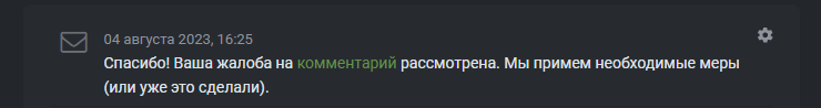 Эти данные позволят оценить правомерность действия модератора другим пользователям.