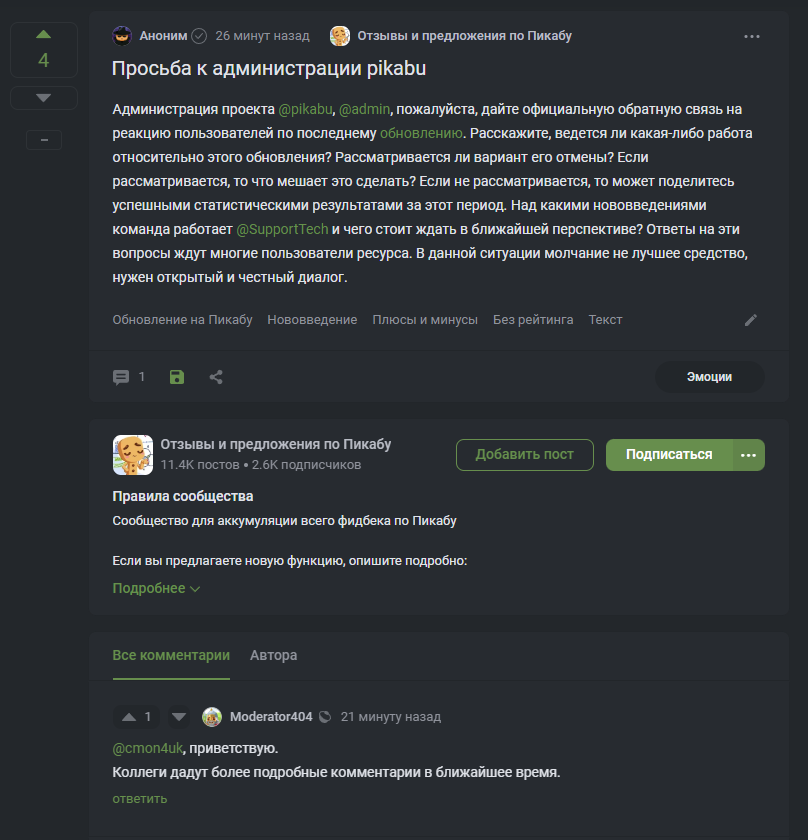 Если пост касается конкретного случая модерирования, подробно опишите проблему, а в содержании поста обязательно укажите: