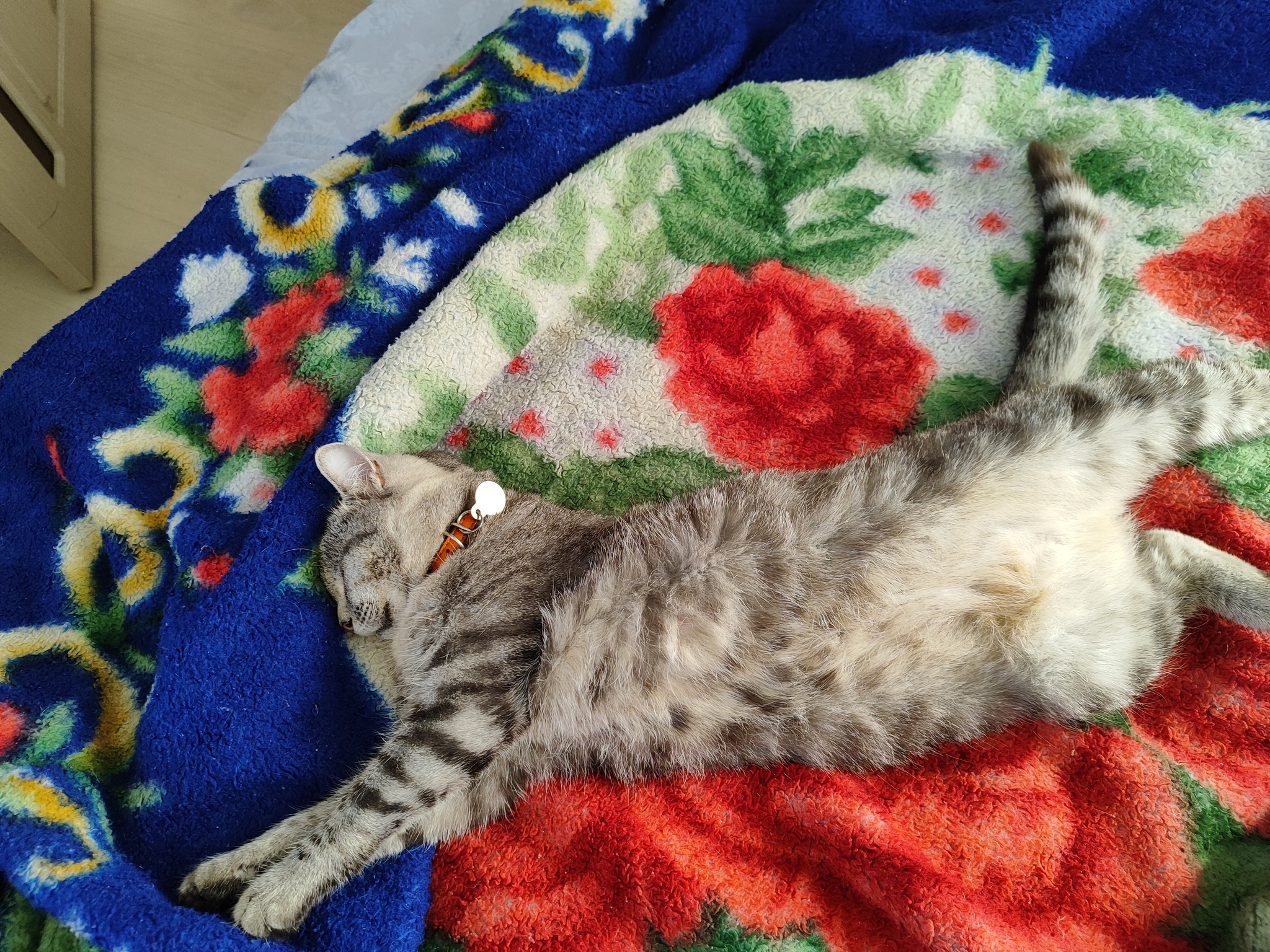 Кошенка за работой - вылёживает кровать изо всех своих кошачьих сил. Кровать сама себя не вылежит, а кожаным не до этого, им надо денежку зарабатывать, что бы кошенку прокормить. А ведь есть ещё диван и кроватки мелких кожаных, их тоже надо вылежать. Столько дел, столько дел, лап на всё не хватает