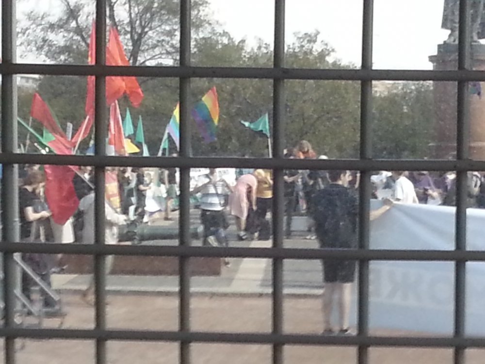 Ну совсем не лоббируются, ага. 1 мая 2014, Москва и Питер. Пидоры проводят санкционированное властями шествие, гомофобов пакуют в автозаки. Так держать!