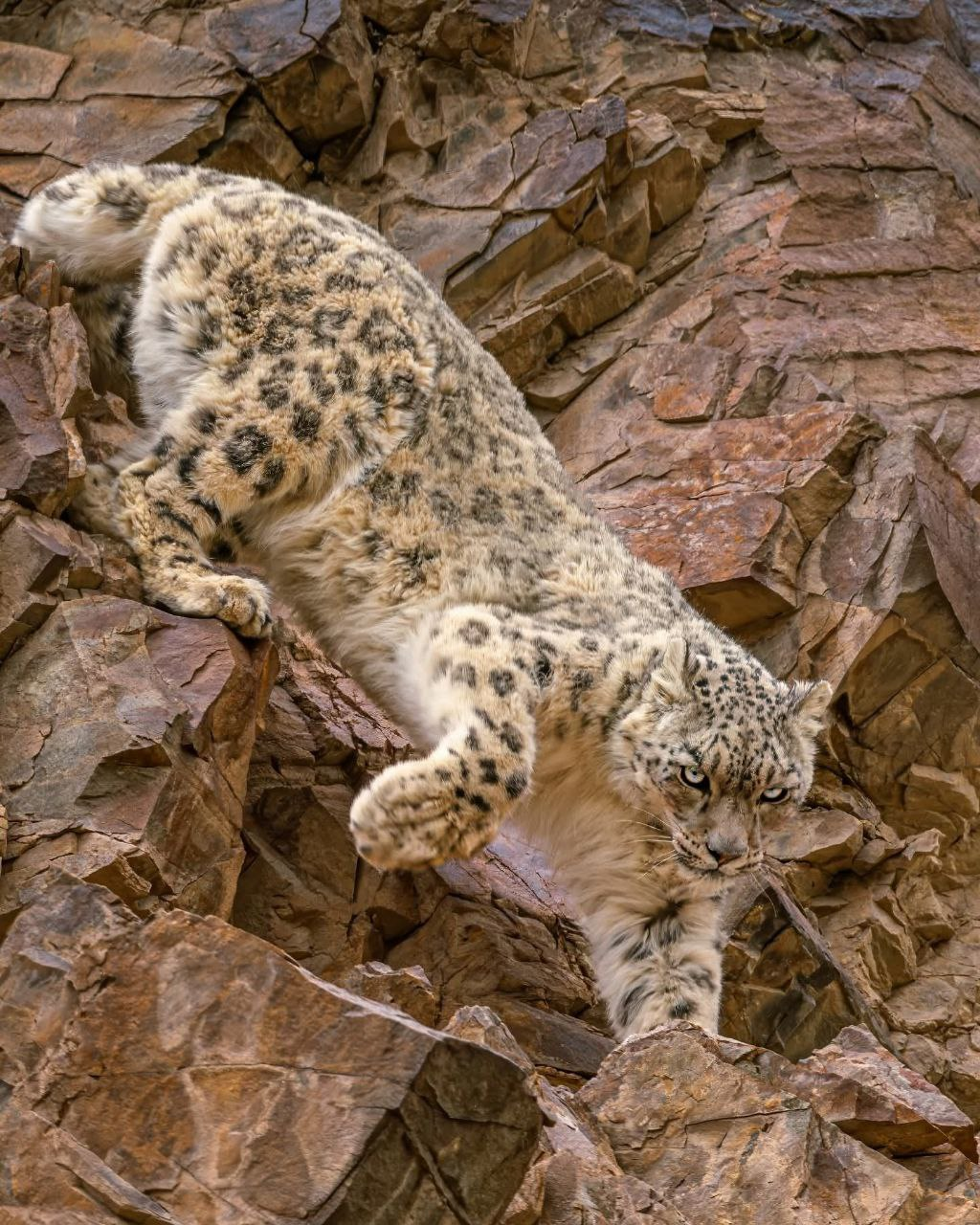 Каждый мускул снежного барса работает в идеальным балансе с гибким идеальным телом. Каждое движение полно грации и силы.