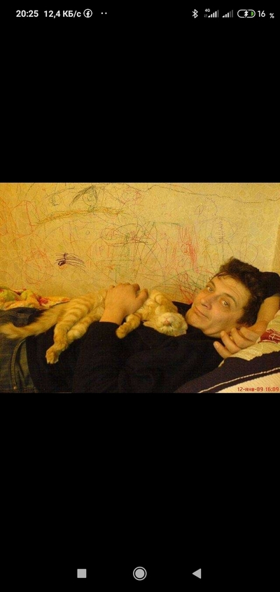 Обои не меняли, пока не перестала самоутверждаться как художник. А так просто умилялись шедеврам. Кусок обоев с наиболее яркими рисунками сохранили. На фото я , кот Амадор на фоне живописи.