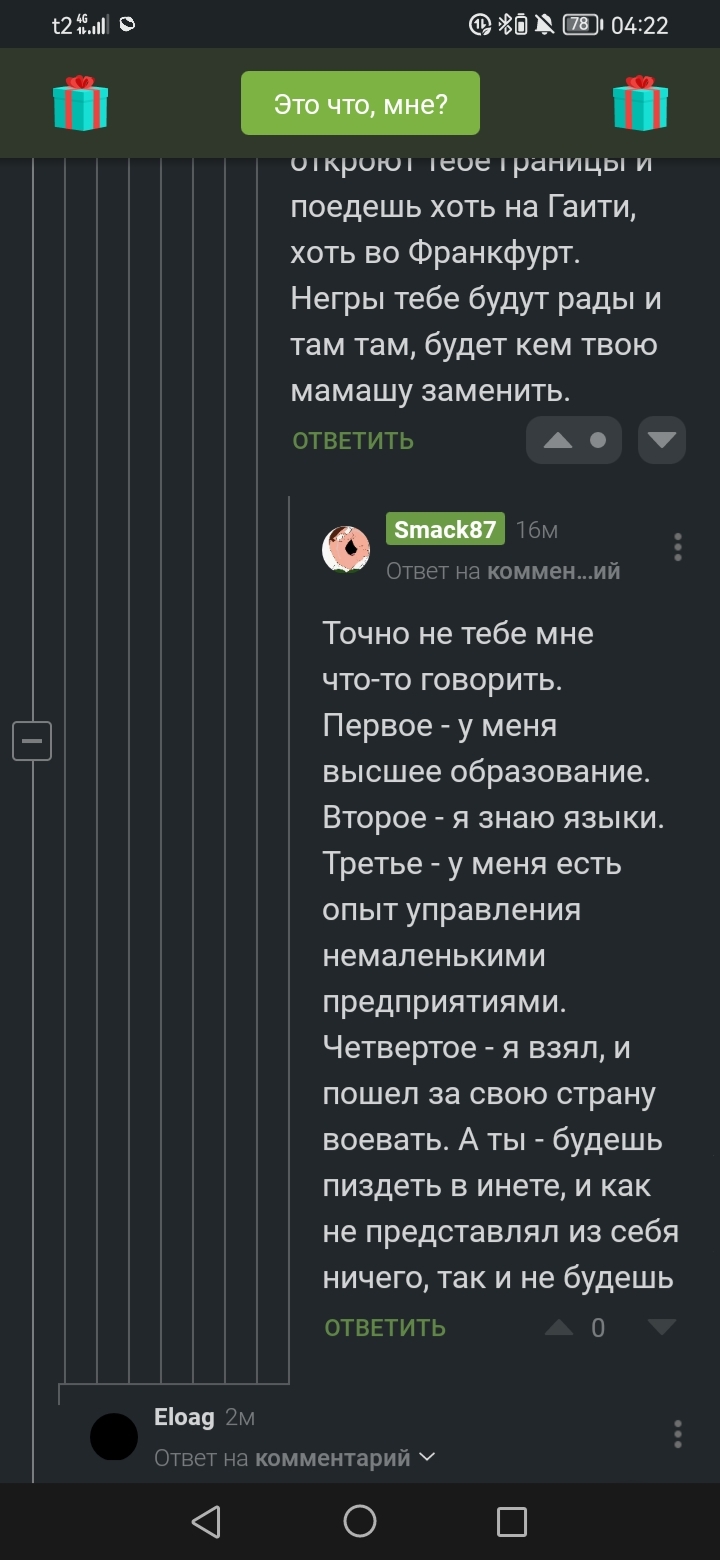 Smack87 Ну вот есть такие... 11 месяцев назад Я считаю, что аргументы противника победили. Мододец же? Страшно за страну, которой не будет больше... [моё] Спецоперация Диалог Позитив Длиннопост Скриншот Комментарии на Пикабу 1 1 1 Ещё 0