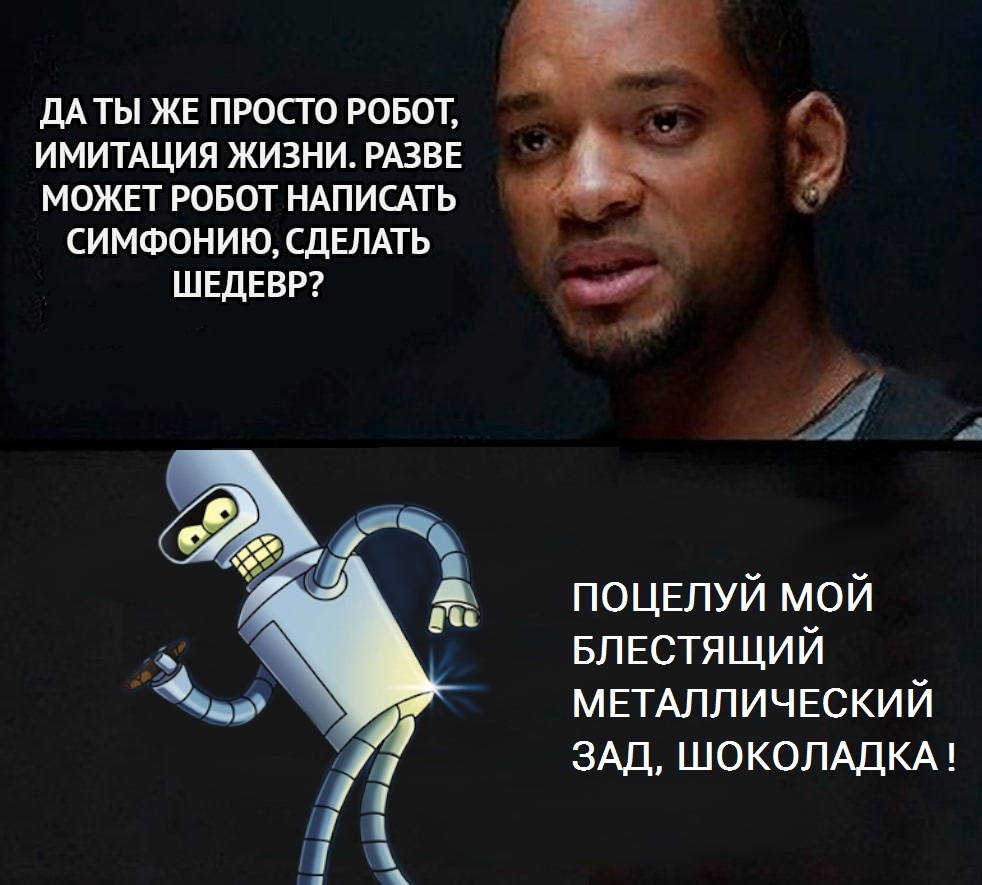 9 o141ca Юмор Ну вот и поговорили 10 месяцев назад Картинка с текстом Я робот Бендер (Футурама) Уилл Смит Юмор Ещё 0