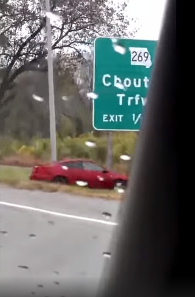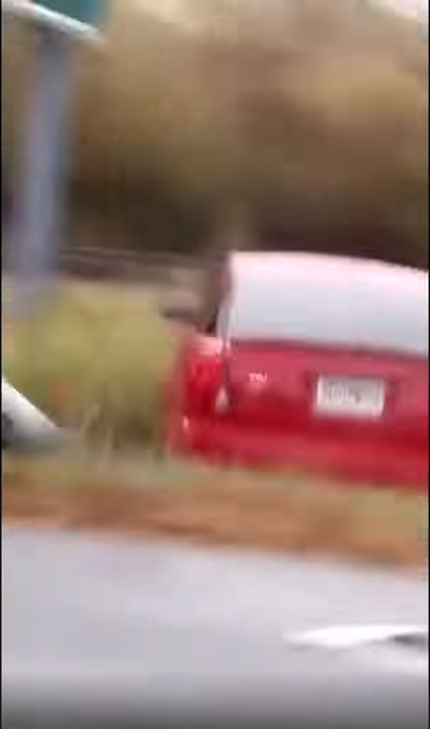 Парни смеялись над тем, что у водителя красной машины проблемы, а когда он съехал с дороги, то аж заржали. Правда, через пару секунд, въехали в зад впереди идущей машины. Физически они не пострадали, но машину свою разбили. Карма.