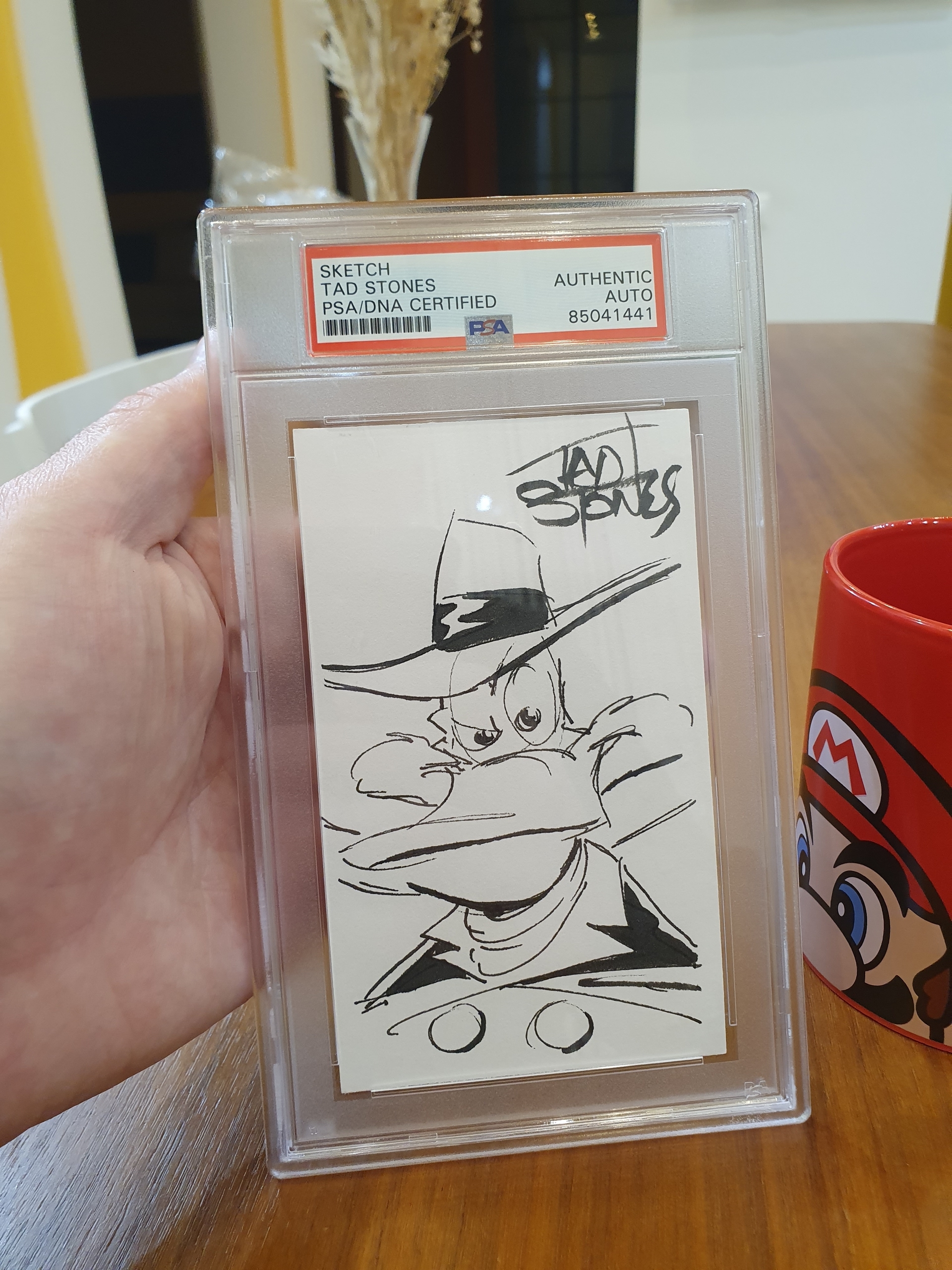 Вот такую штучку забрал я сегодня на почте)) С сертификатом PSA - подлинность скетча чекается по куар коду с обратной стороны sketch-а. Скетч "Черный Плащ" рисунок от руки самого Тэда Стоунса с автографом Tad Stones - создателя наших, любимых мультфильмов из 90-х., знаменитого на весь мир художника и главного аниматора Disney.