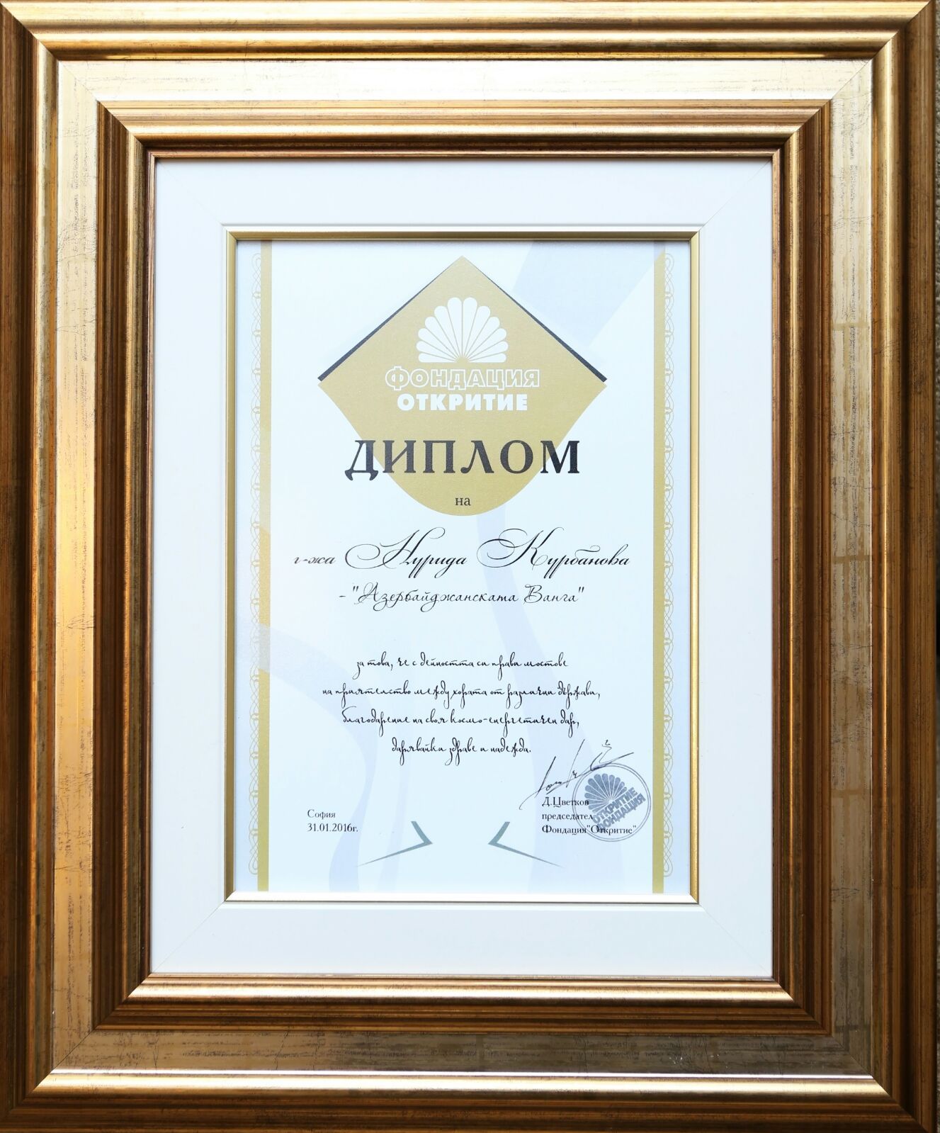 - В конце января этого года я посетила Болгарию, где в столице этой страны Софии прошла церемония моего награждения почетным дипломом Международного фонда "Открытие" - "Азербайджанская Ванга" и Орденом "Болгарская Роза". Почетные награды были мне вручены президентом фонда Доно Цветковым. В качестве дара организаторам мероприятия я специально из Баку привезла в Болгарию азербайджанский ковер и вручила его им.