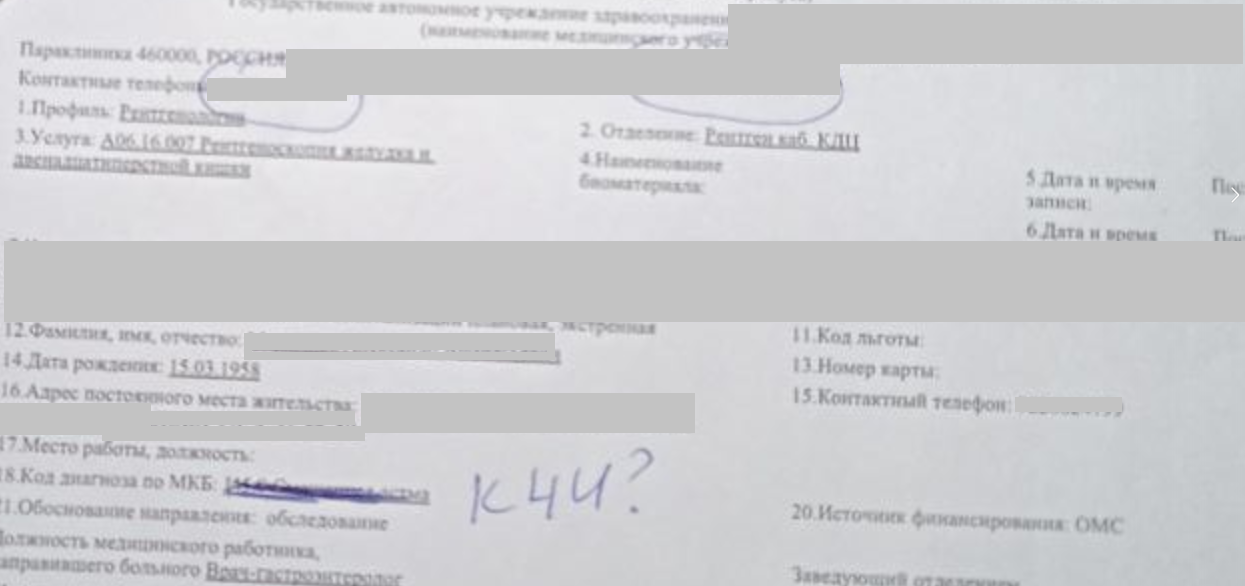 Направление на рентген желудка - МКБ К44 под вопросом (диафрагмальная грыжа)