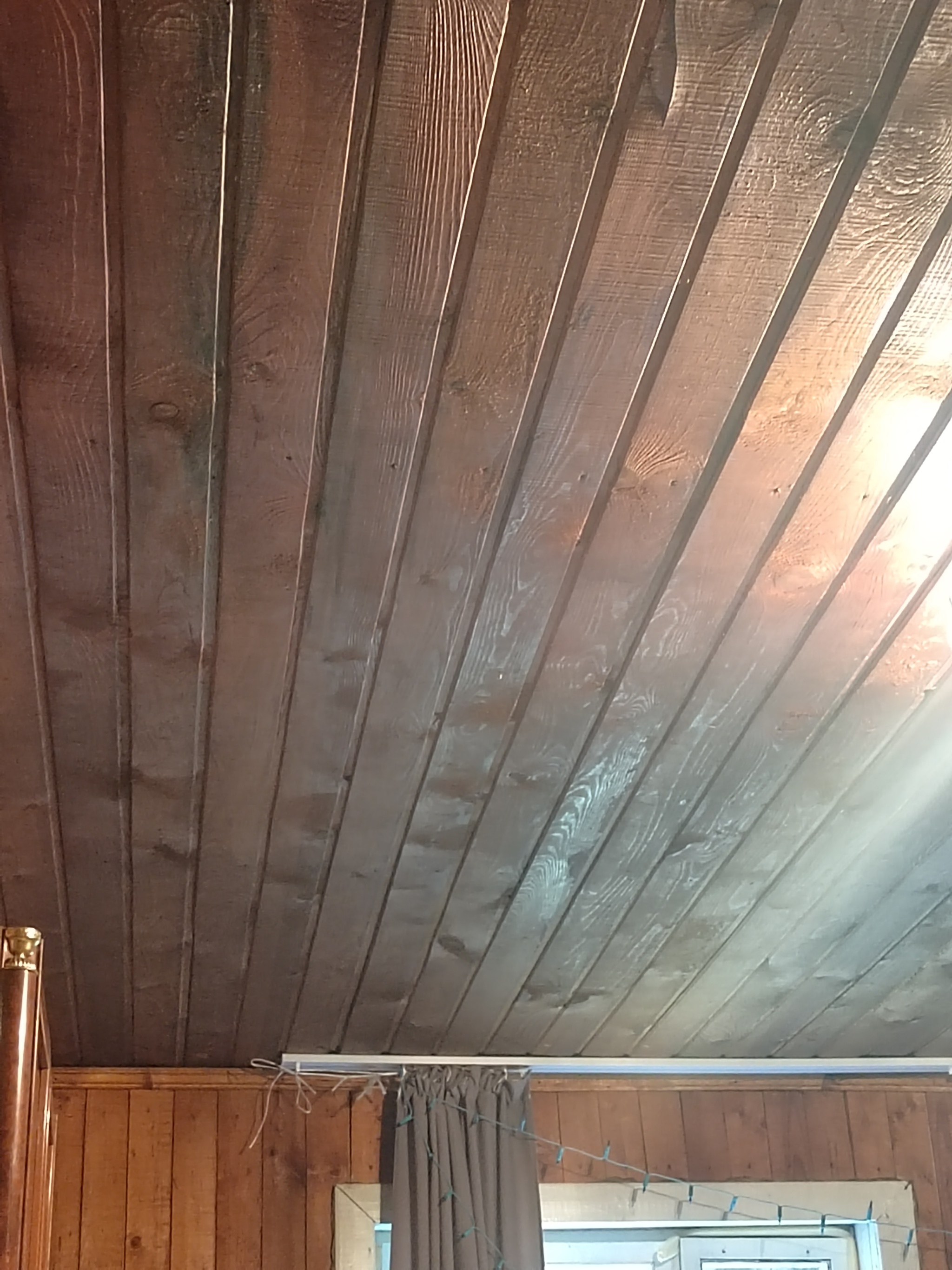- очень нравится именно такой деревянный потолок и не хочется заменять его на обычный гипсокартон