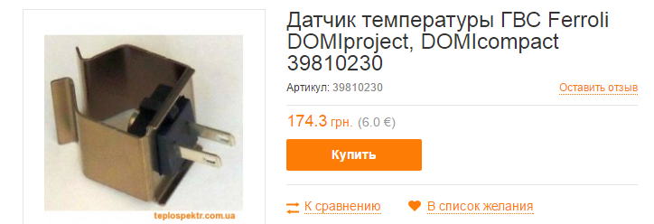 Буду признателен, если знающие люди проконсультируют. Имеется котел Ferroli DOMIcompact C24. отопление в норме , а вот по горячей воде проблемы.Открываешь кран и идет просто холодная вода,горелка не горит. Индикация показывает поломку датчика системы ГВС