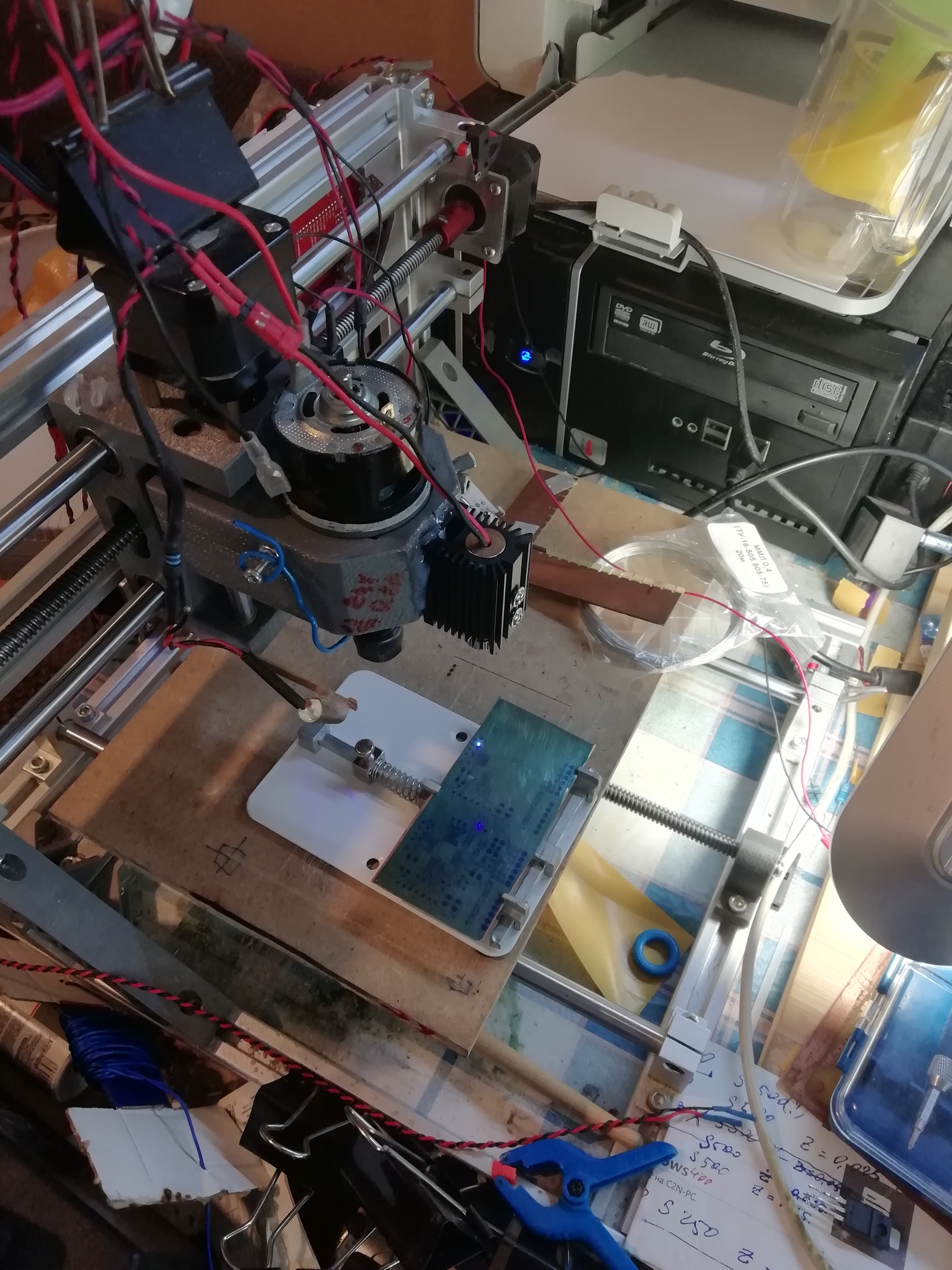 Что я хочу: получить некоторую универсальность... Положил заготовку, зажал фрезу/сверло - насверлил "дырок" и пошел светить лазером. Вылезло "ок, переверни плату" и пошел светить дальше... После все как обычно, травление и пайка...
