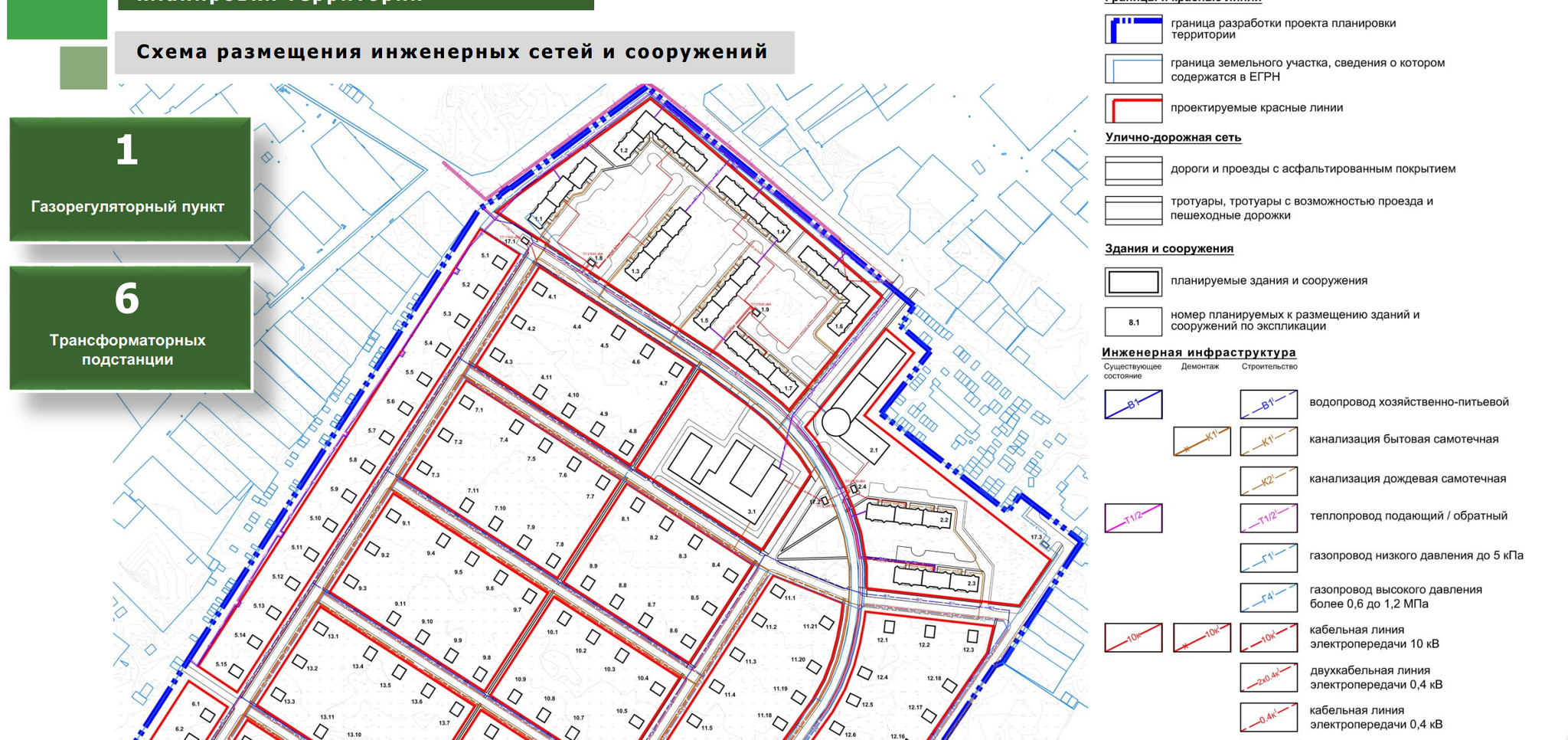 Согласно проекту на территории будет организована дорожно-уличная сеть, проведены все коммуникации(г+х вода, электричество, водоотведение, газ), так же на сайте администрации города есть документ с сроками реализации данного проекта(2025-2030г).