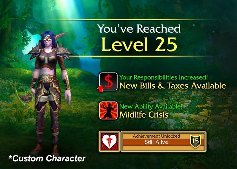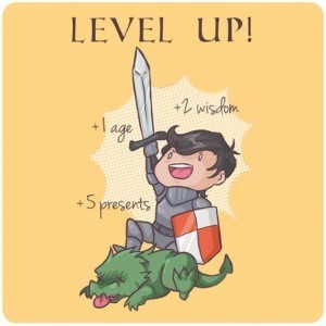 Где-то на просторах интернета валяется картинка с текстом. сама картинка, скорее всего, из компьютерной игры, по стилистике напоминает Скайрим, но точно не он. на картинке текст "Level up" "level 26" и ещё текст на английском (из-за чего и большие проблемы с поиском). суть картинки в том, что она как открытка к 26му дню рождения, что становится доступно с открытием нового уровня и т.д. (опять же в стиле левел апов некоторых компьютерных игр)