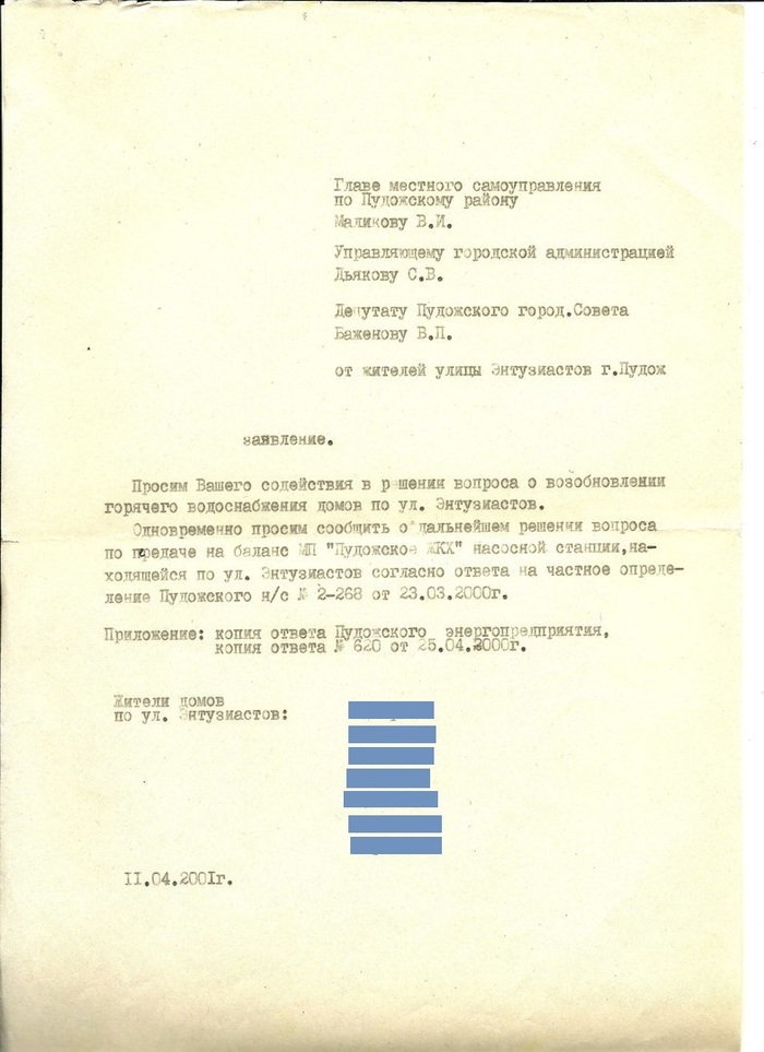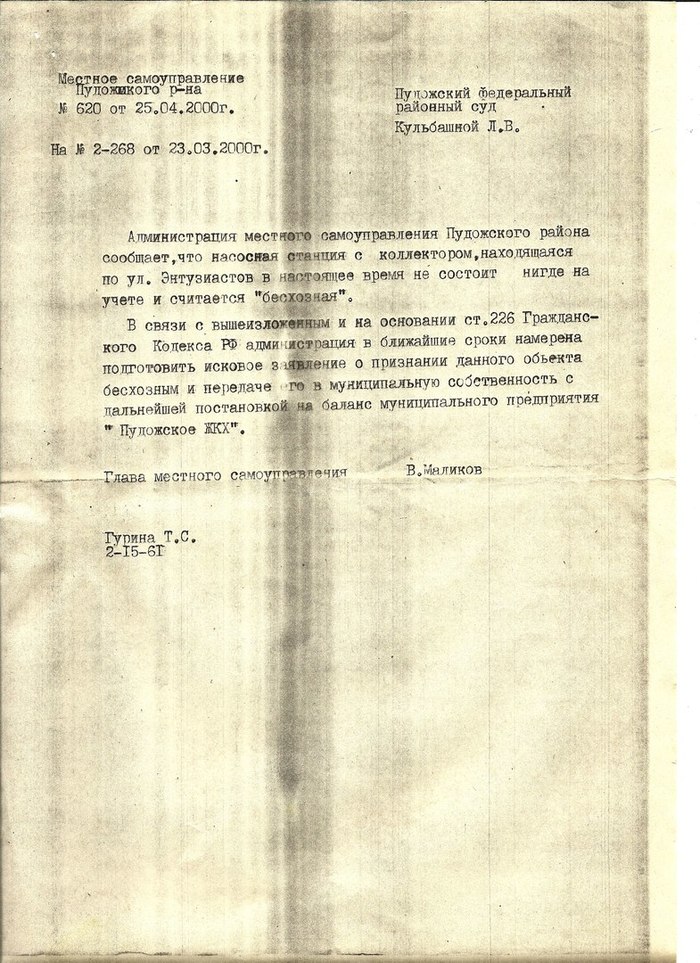 На все запросы жителей в местный архив звучит отказ - ничего не сохранилось (со слов сотрудников архива - администрация запретила выдавать какие-либо документы жителям). Тем не менее документы, подтверждающие ввод сетей в эксплуатацию есть.