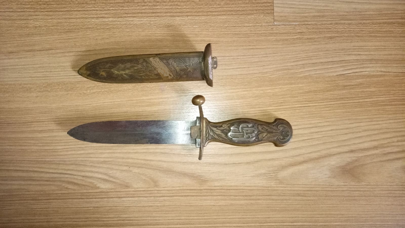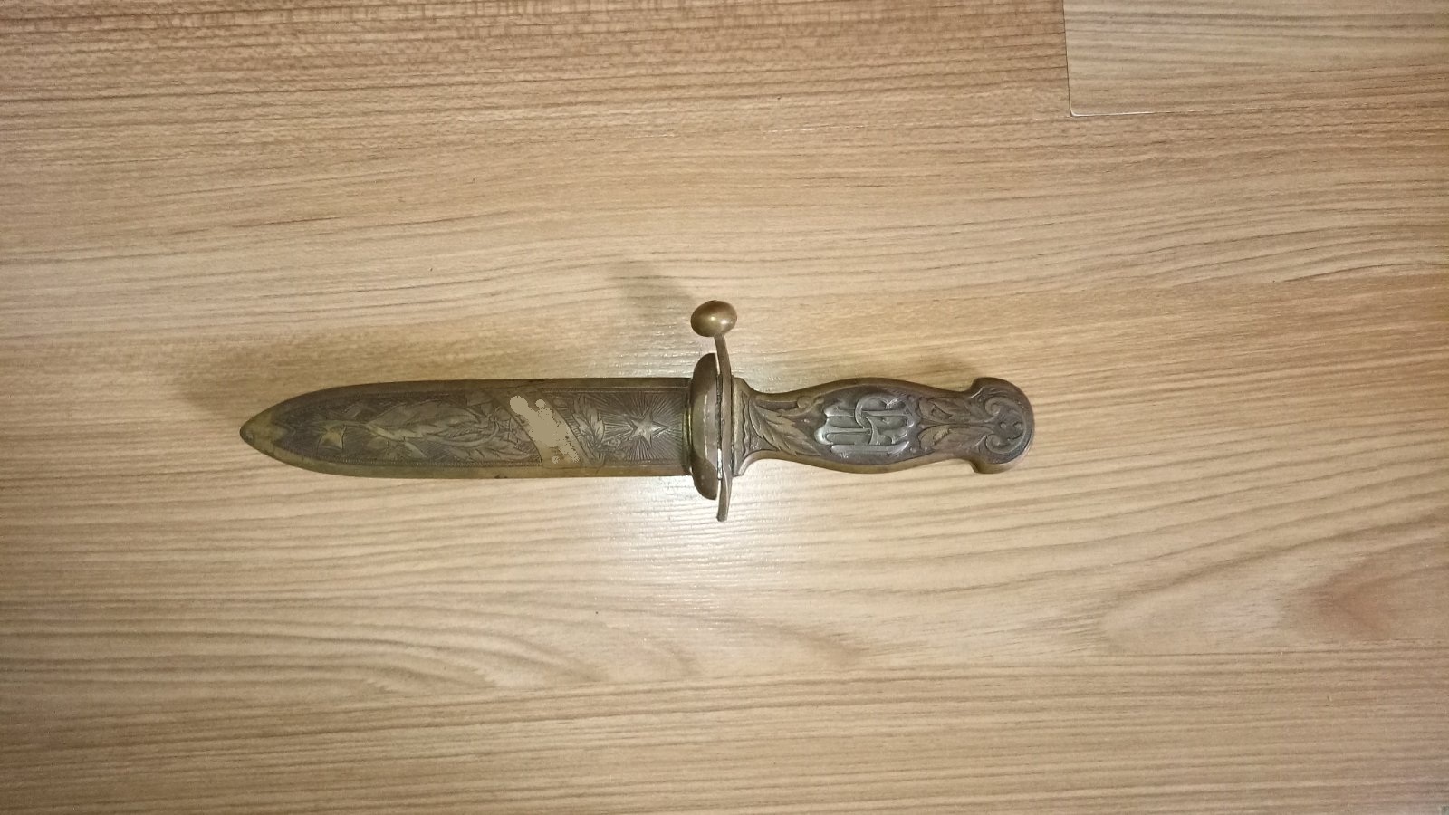 Доброго дня (вечера, утра, прочего). Объявился вот такой наградной именной кортик. Каталоги ничего не дали. Может быть, кто-то подскажет, что это за оружие. Время - Великая Отечественная Война. Лезвие длиной 115 мм. Я подозреваю самодел. Поиск в интернете ничего не дал (однако, может не те вопросы задавал).