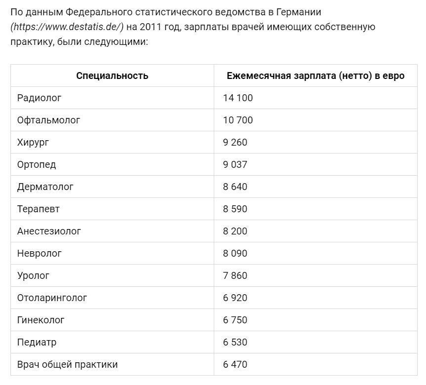 Знакомые в Германии: она в магазине товар на полках расставляет, он где- то на заводе работает. В прошлой российской жизни оба люди с высшим образованием. Как-то в разговоре она похвасталась, что сын хорошо учится. Я говорю, что мол хороший мальчик, раз хорошо учится-врачом будет. Она на меня тааак посмотрела и говорит: «Больно надо, столько лет учиться, работать день и ночь и ещё гроши за адский труд получать.» Вот так мои знакомые вам Германии думают о медицинских работниках в целом и обо мне в частности. Хотя чуть что обращаются)».