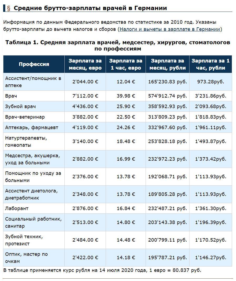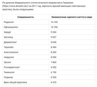 Жаль, я сейчас не на работе, а то бы сфоткала для вас таблицу с заработной платой в нашей клинике от ассистента врача до шефа. Однако русские коллеги должны знать, что если врач получает примерно шесть тысяч с копейками брутто, то на руки он получит 3.200.