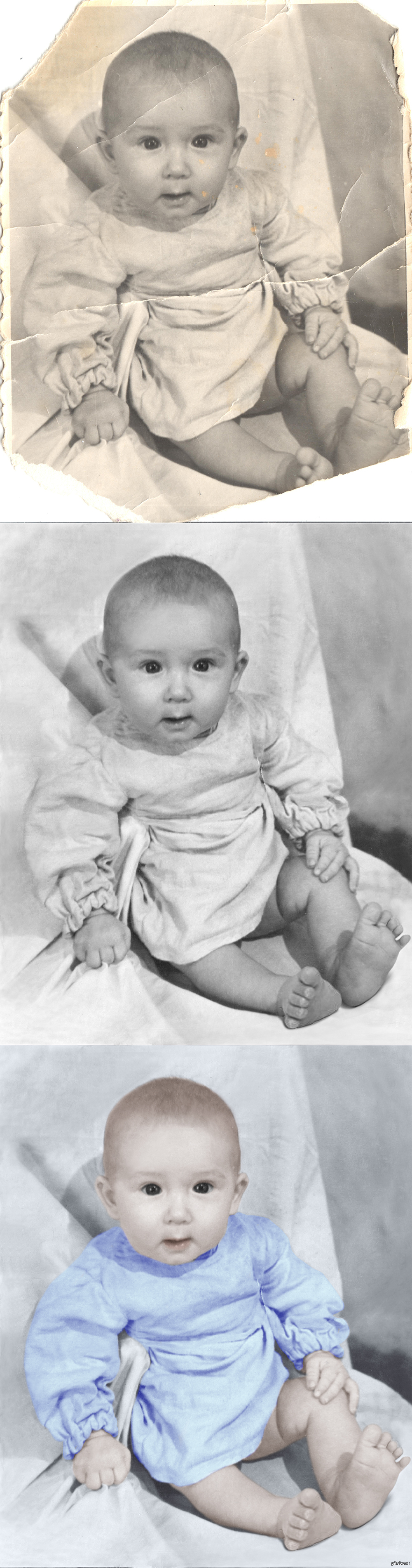 Девушка попросила восстановить и раскрасить фото ее отца. Удалить повреждения я более или менее смог. Надеюсь вы сможете подсказать как лучше с цветами быть.