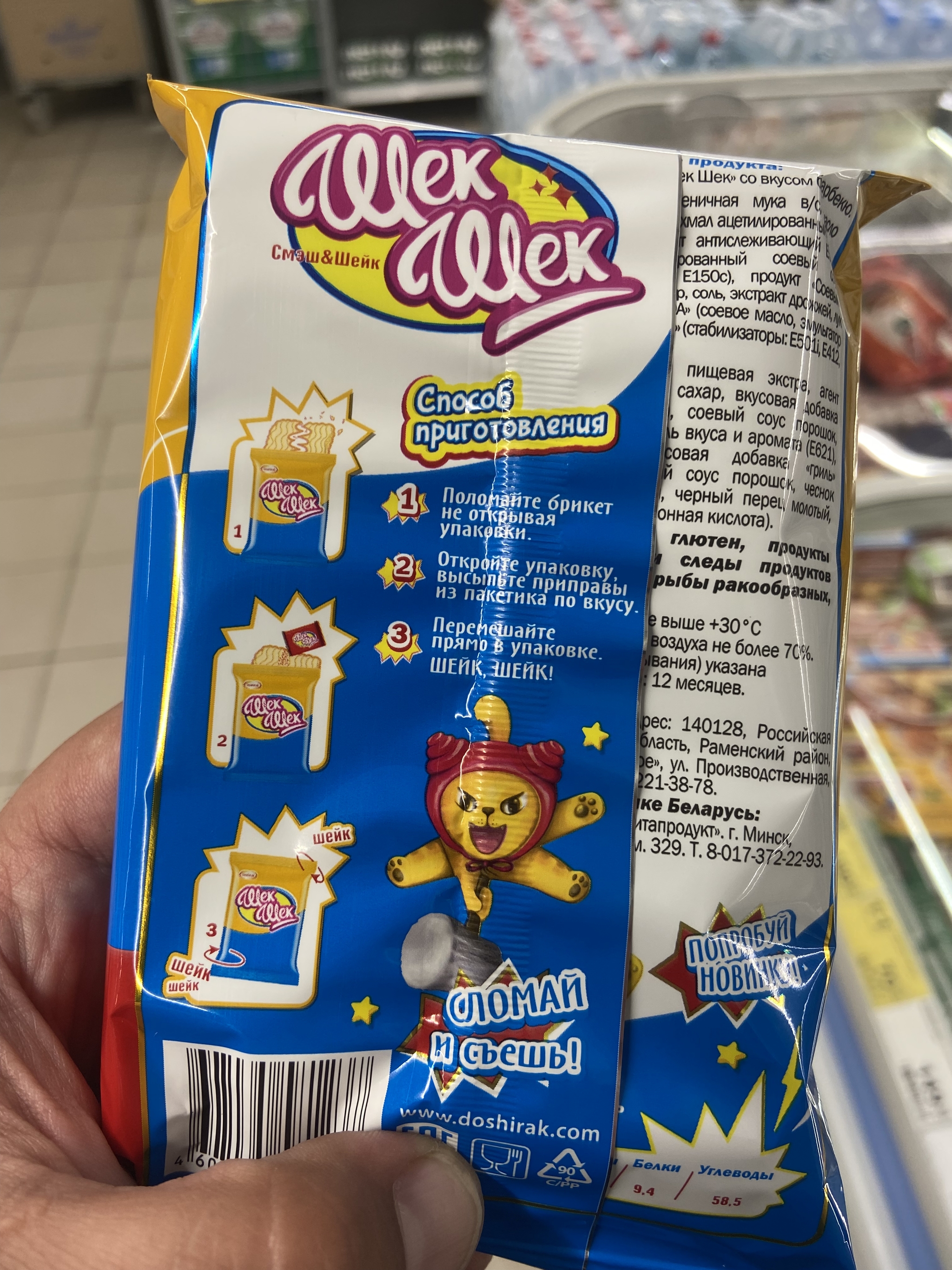 Сегодня в Магните меня швырнуло в бурю воспоминаний когда я увидел на полке бп вермишель предназначенную для сухого поедания 😳. Приложена инструкция, именно та, которую мы разработали тогда, в далекие 90е - 2000е : поломай, засыпь, перемешай и съешь !