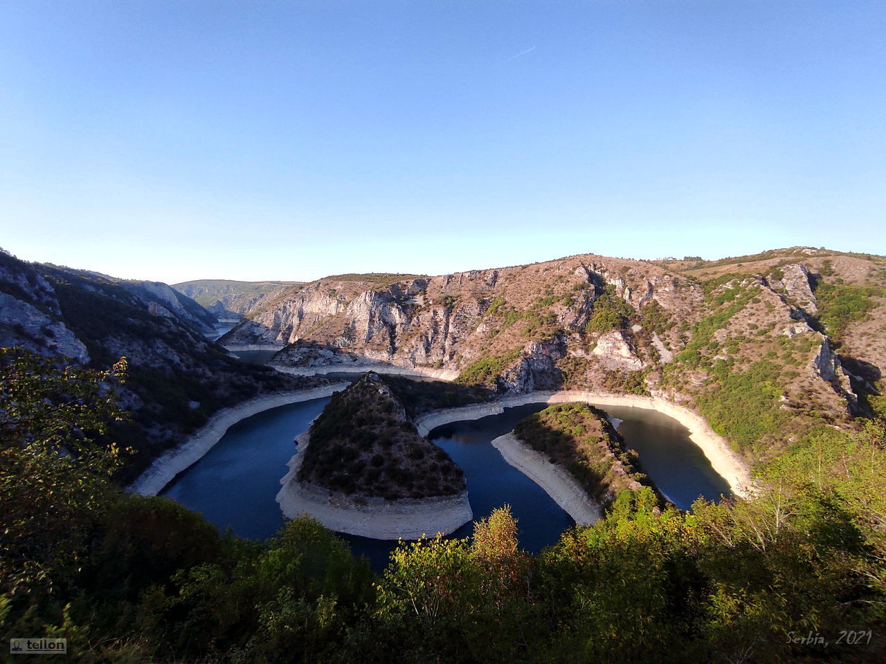 Сипы, действительно, кружились несколько ближе к противоположному берегу, но сказать, что здесь совсем с ними плохо нельзя, мы на следующий день сравнивали: Вид на меандры реки Увац с правого берега
