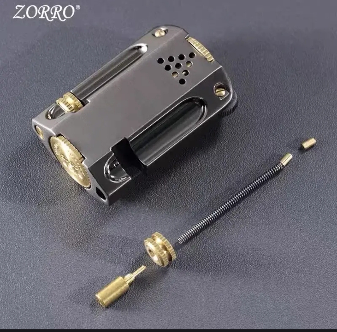 Минус нет ветрозащиты.плюсы лёгкая замена фитиля и ваты,кремния(кресало не является частью корпуса или инсерта),,нет внутреннего инсерта, корпус и есть по сути инсерт.