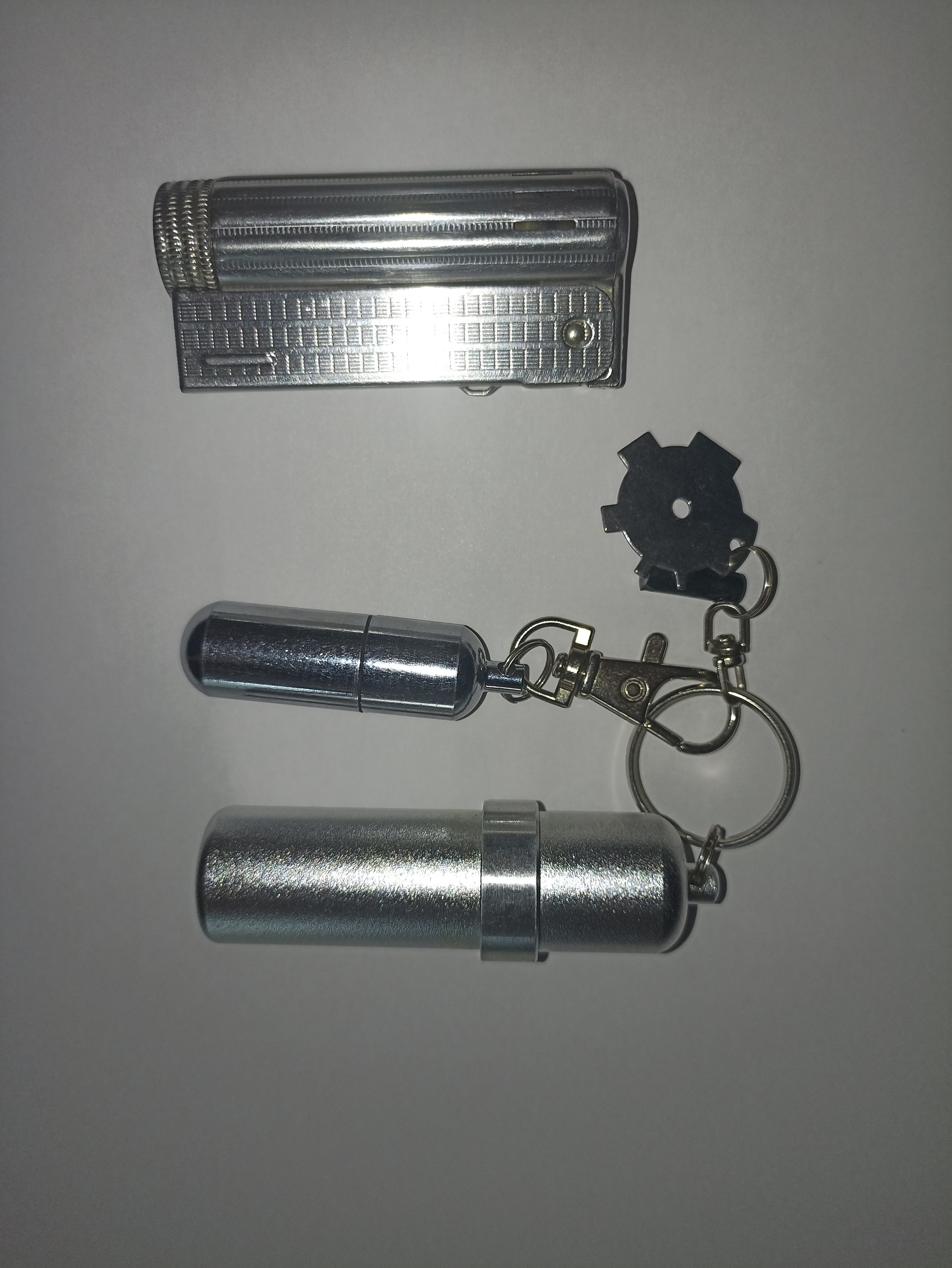 Зажигалки капсулы не предлагаю,их минус неудобства зажигания одной рукой (слишком маленькие) ну и неудобно менять кремень нужна маленькая отвёртка.Хотя сам ношу в наплечной сумке такой набор как НЗ.На постоянке любимая зажигалка имко.