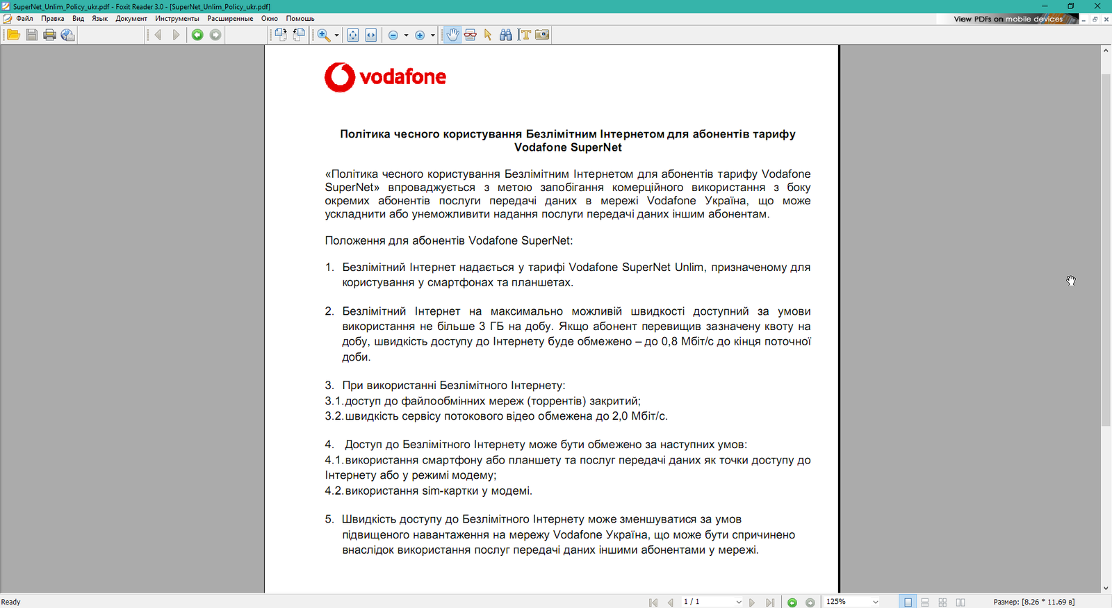 Копаем дальше. Компания предлагает нам прочитать Правила Честного Пользования тарифом: https://www.vodafone.ua/images/files/SuperNet_Unlim_Policy_u.... Чтож, скачиваем файл и охуеваем еще больше просветляемся дальше.