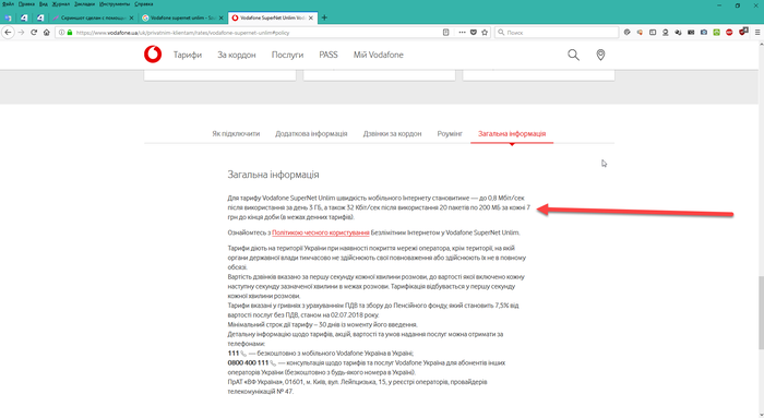Итак. Заходим на сайт Vodafone.ua в раздел этого самого тарифа в подраздел Общая информация: https://www.vodafone.ua/uk/privatnim-klientam/rates/vodafone....