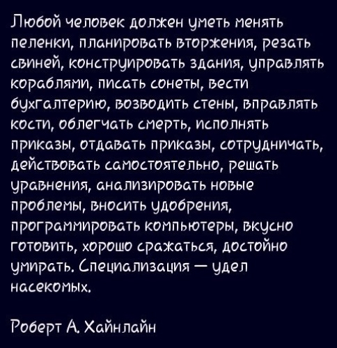Ну вот смотрит ТС игру по телеку, там вопрос - какое насекомое самое мерзкое и ответ паук. Он такой - ну ёб твою мать, а почему не червяк? Почему не медуза? Ну мерзкие же, какая нахуй разница что не насекомые. И идёт вешается от безнадёги, потому что уже год в клинической депрессии. И одним образованным человеком становится меньше. А училка начальных классов, которая тоже в уши долбилась в школьные годы чудесные, посмотрела ту же передачу и пошла ученикам рассказывать что паук - насекомое, плодя невежество. Ну она же по телеку видела - зачем проверять?