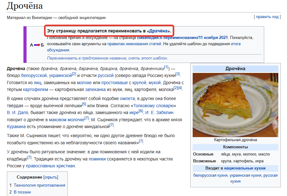 "Также М. Сырников пишет, что «вероятно, ни одно другое древнее блюдо не было позабыто единственно из-за неблагозвучности своего названия»"