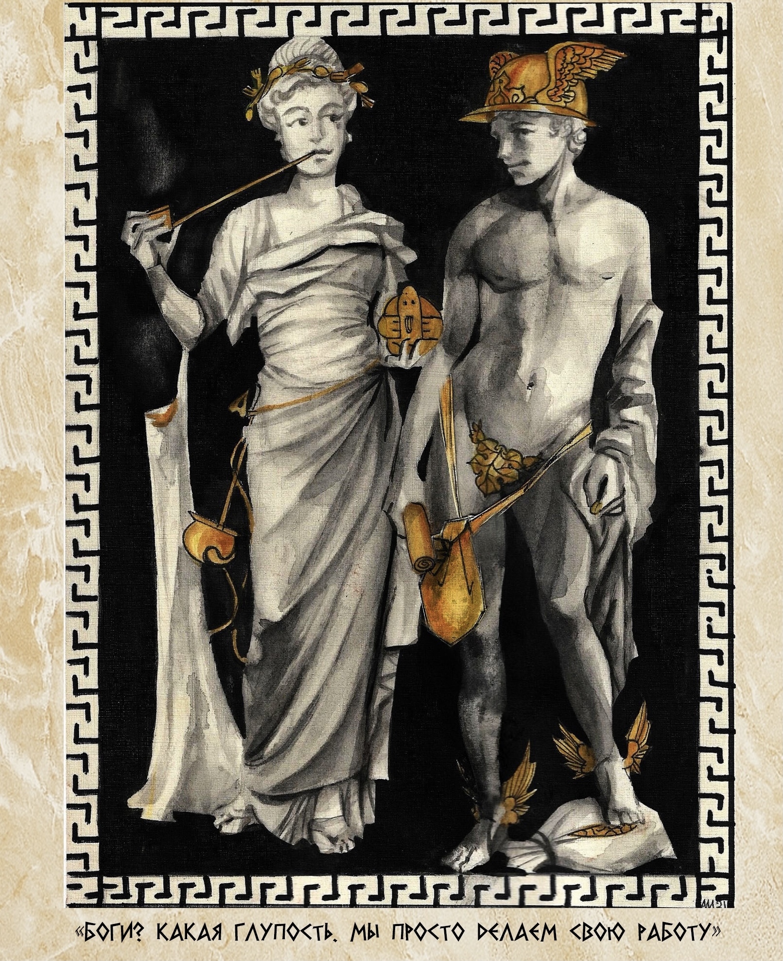 Главный герой «Опочтарения», как мы помним, получил в Почтамте не только оклад и три покушения, но и некую роль заместителя местного божества - Федекса (Fedecks). Надеюсь не нужно объяснять, почему бога почты на Плоскомирье зовут Федекс? В своё время в Почтамте стояла его золоченая статуя: в крылатом шлеме, крылатых сандалиях и крылатом... фиговом листке.