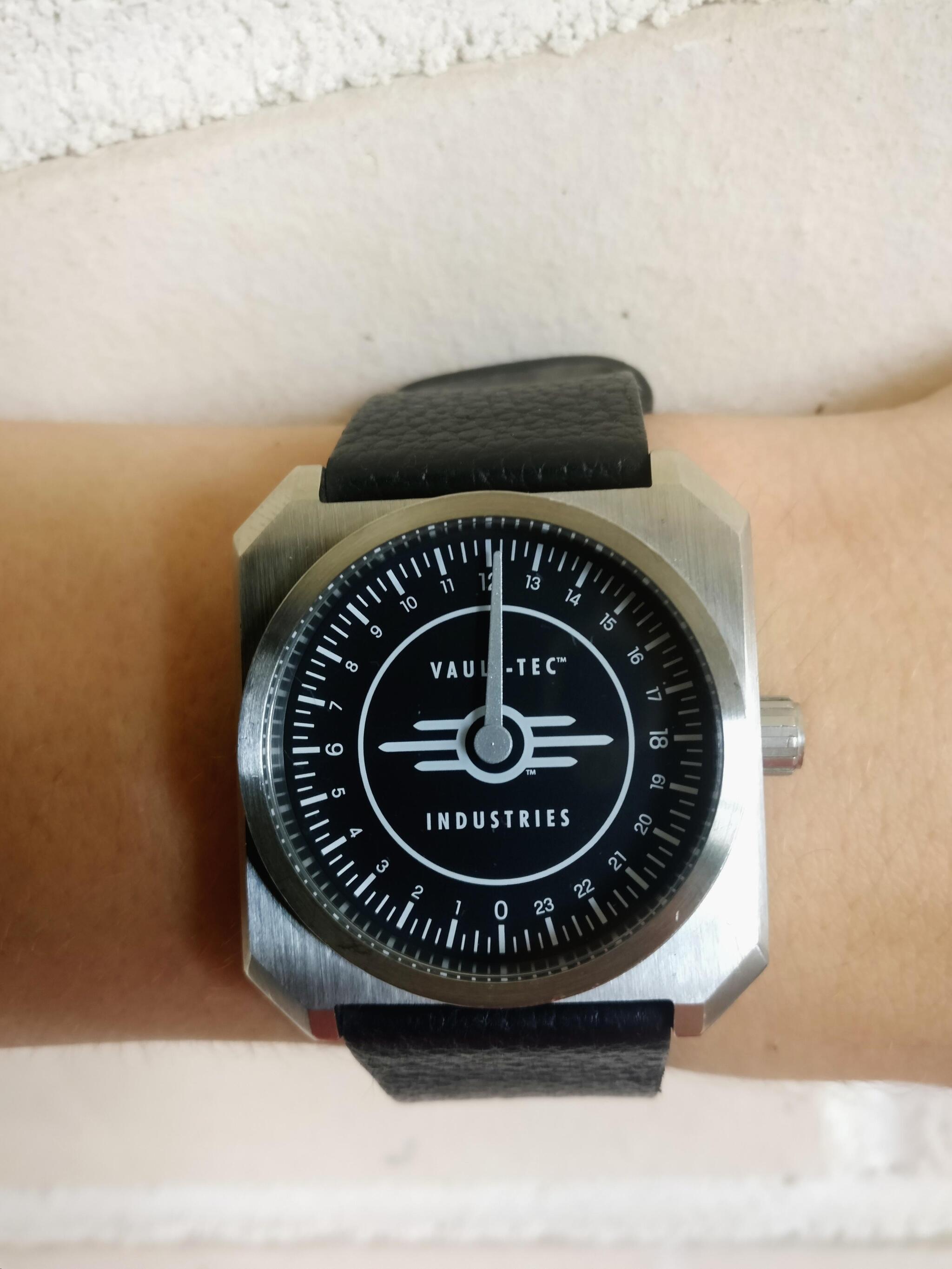 Когда-то, во времена такие же старые, каким старьём почему то считается игра Fallout 4, товарищи Bethesda устроили предпродакшн вышеуказанной игры и продавали соответствующую атрибутику. Они выпустили и продавали в своём магазине такие интересные часы.