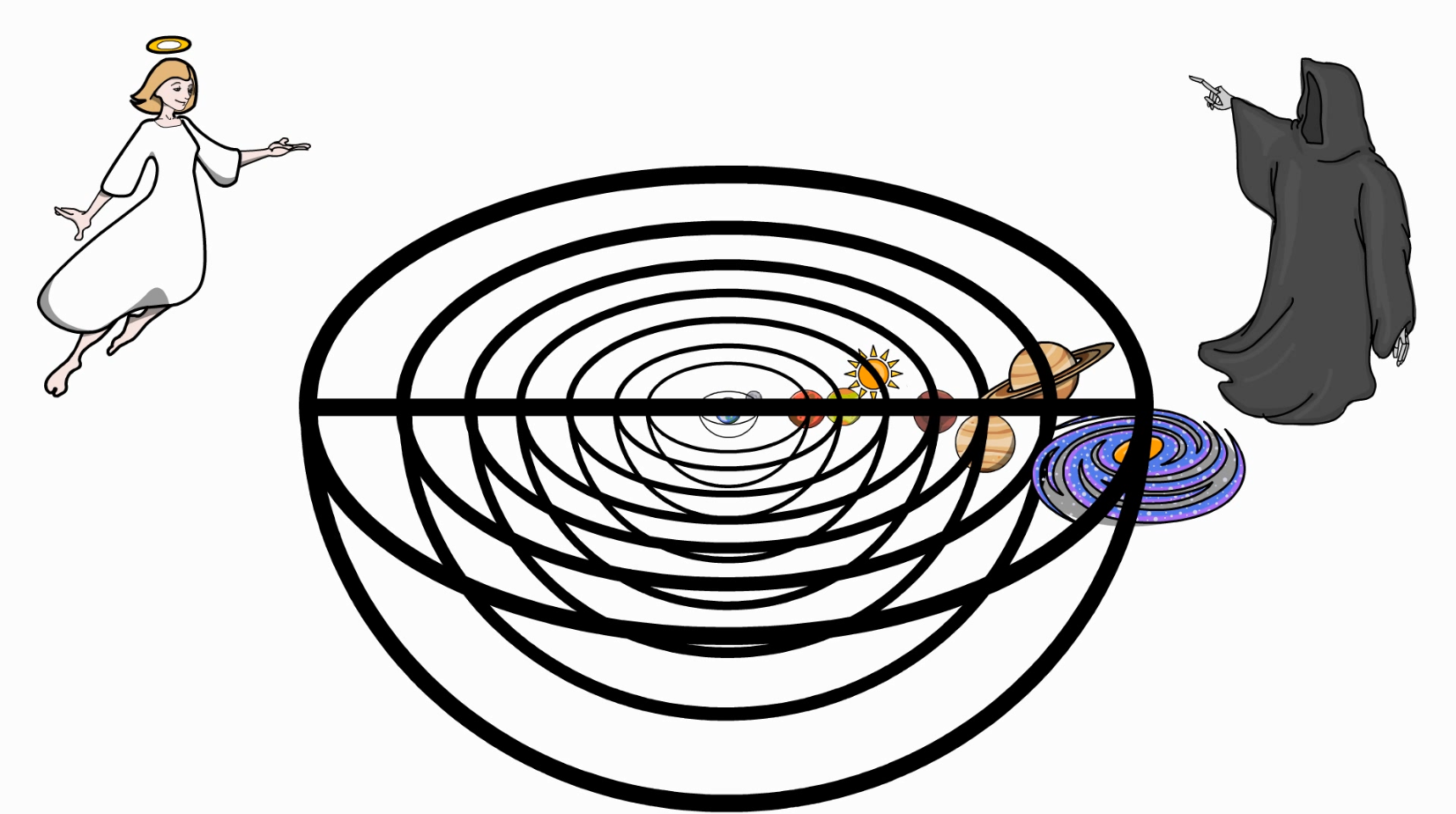 В своём видении мира греки знали о луне, солнце, пяти планетах и конечно о далёких звёздах. Вкупе это дало 8 сфер. В центре разумеется неподвижная земля. Именно такую модель строения вселенной предложил во втором веке нашей эры другой греческий учёный – Птолемей. Его модель достаточно хорошо предсказывала положение светил на небе. Более того она была принята церковью, потому что оставляла много места за пределами 8-й сферы для рая и ада.