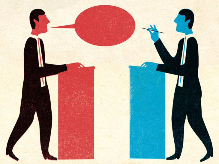 Интервьюер: Есть ли какие-то приёмы в дебатах, которые помогают продвинуть свои идеи, донести до людей ещё сомневающихся?