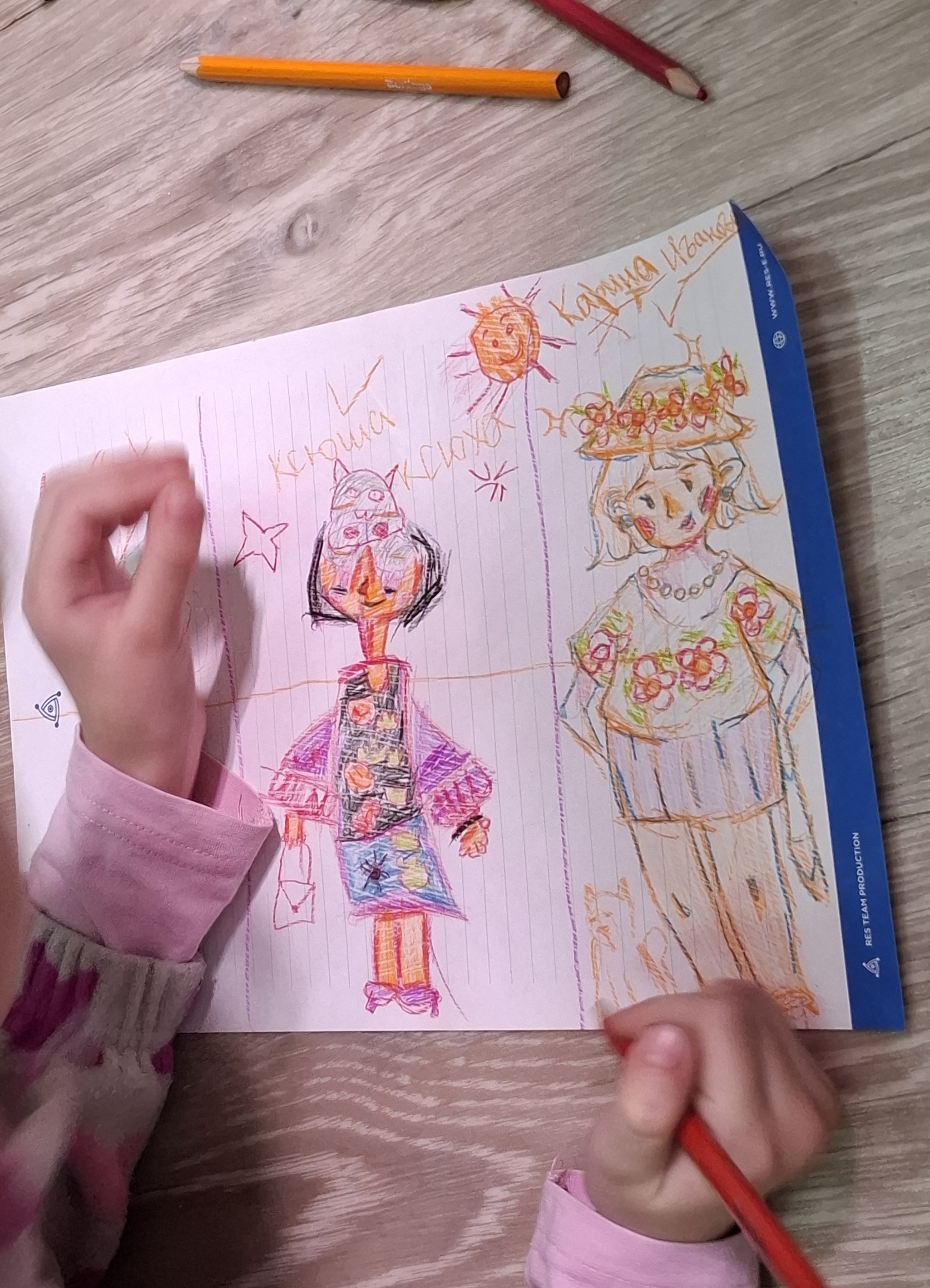 Детям нравится, когда вместе с ними что-то делают, не вместо них, не заставляя их что-то делать, сегодня это было рисование и командная работа. Задавать вопросы - а что у нее будет в руке? А какие узоры? Хвалить, а потом говорить " иди маме покажи какую красоту нарисовала"