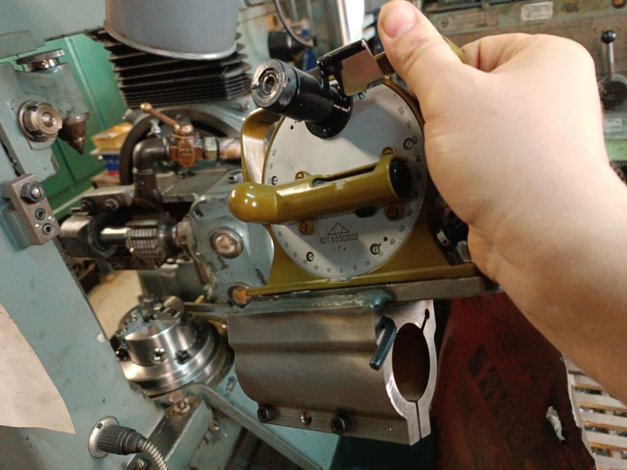 У нас две шкалы. На одной - сколько мы перешли за целый градус, на другой - сколько не дошли до следующего. Иногда удобно. Наебковой техникой (постукиванием резиновой киянкой по корпусу суппорта) выставляем суппорт на нужный угол, затягиваем и...