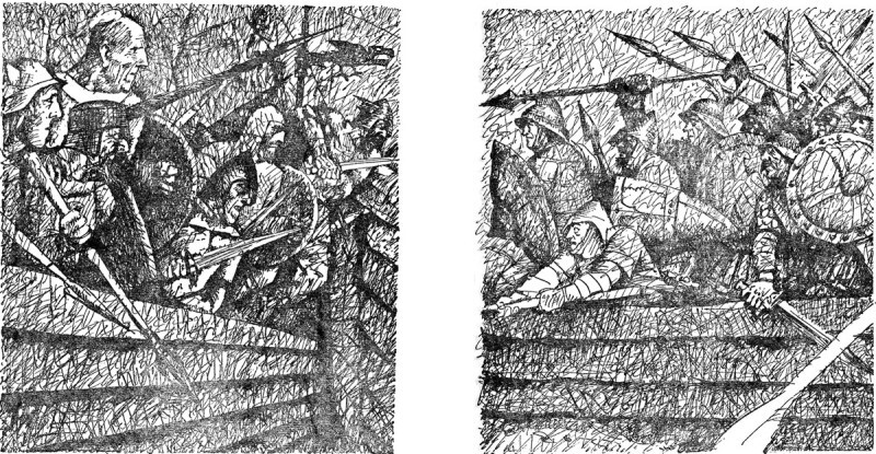 Как сейчас помню, меня осенило на книжке Юрия Коваля "Пять похищенных монахов", конкретно — вот на этом рисунке. Та же самая байда, кстати - офсетная печать, бумага - дерьмо и в две краски.