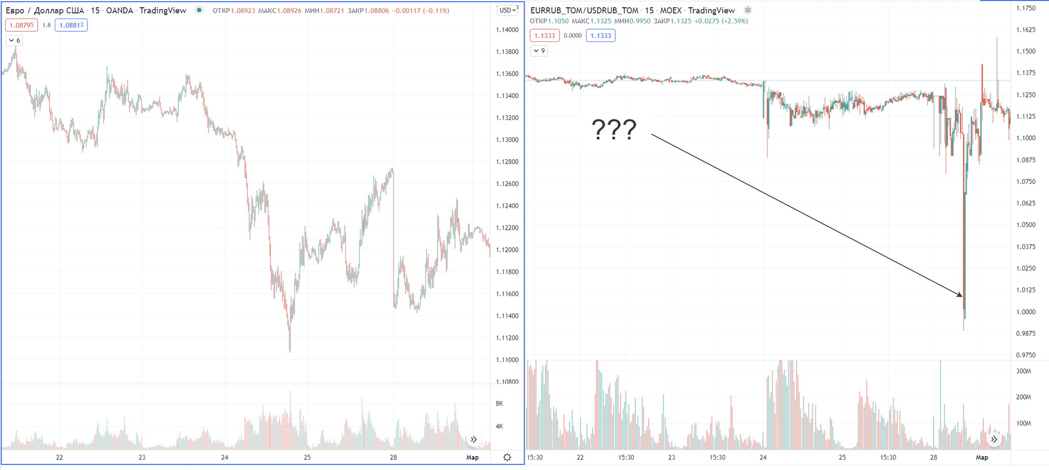 Много лет живу, но такого не видел никогда. Смотрим картинку 1. Курс доллара к евро.