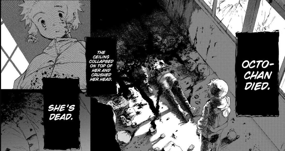 Осознавая ужас, который Окто устроила, Юта абсолютно серьезно сказал, что ему плевать на других. Но действительно ли это то, чего так желала его подруга? Действительно ли она готова отправиться в ад? Окто дрогнула. Долгое время самокопания в посмертии, жертва и борьба Юты, его любовь и преданность. Юта, Юта, Юта. Окто, пусть и не без помощи поддельной Окто, пришла к понимаю - все чего она хотела, это чтобы Юта не бросил ее. Страх одиночества толкнул девчушку в пучину безумия.