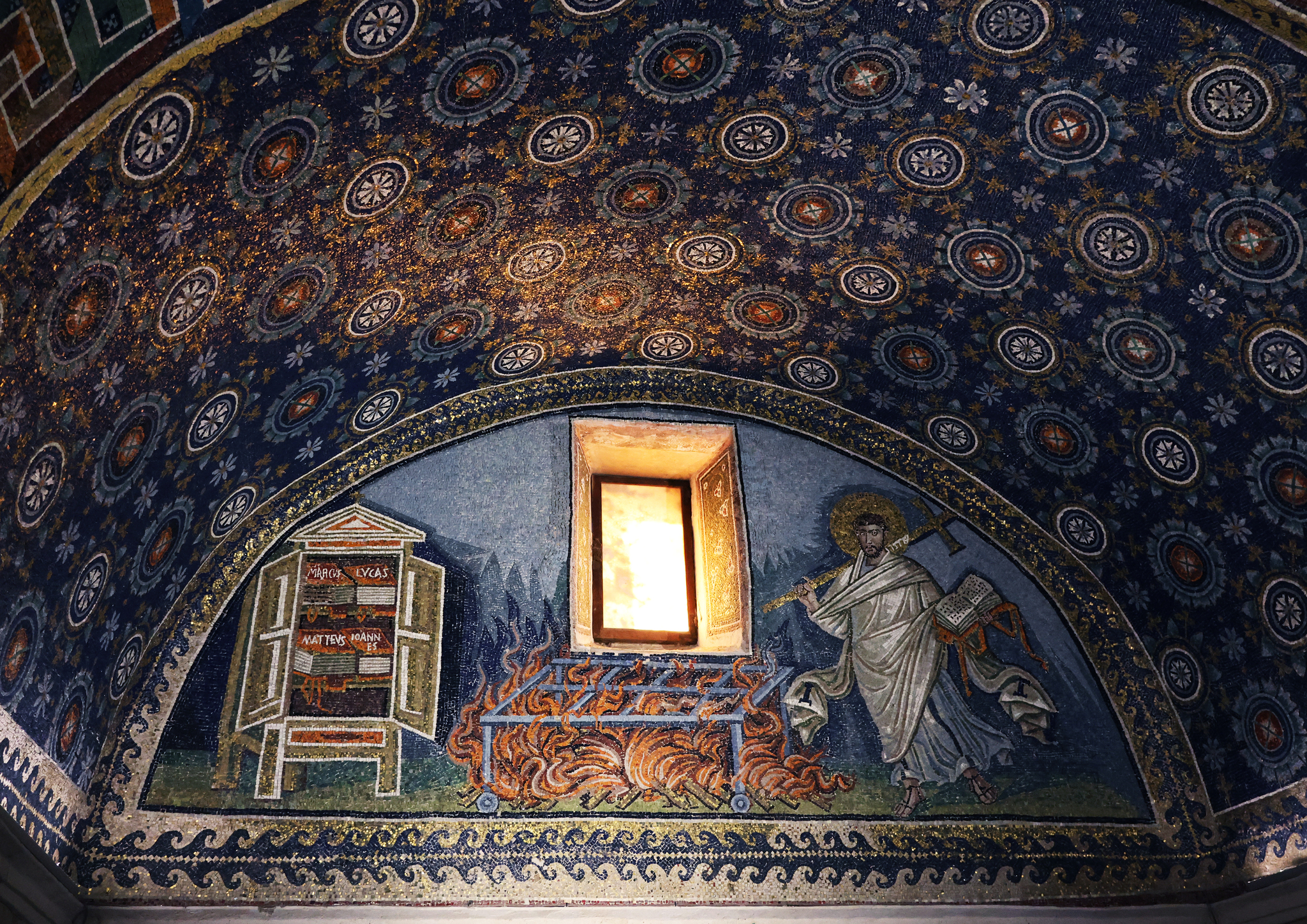 Мавзолей очень низкий, поэтому все панно находятся довольно близко к зрителю. Фотографировать и рассматривать изображения очень удобно.