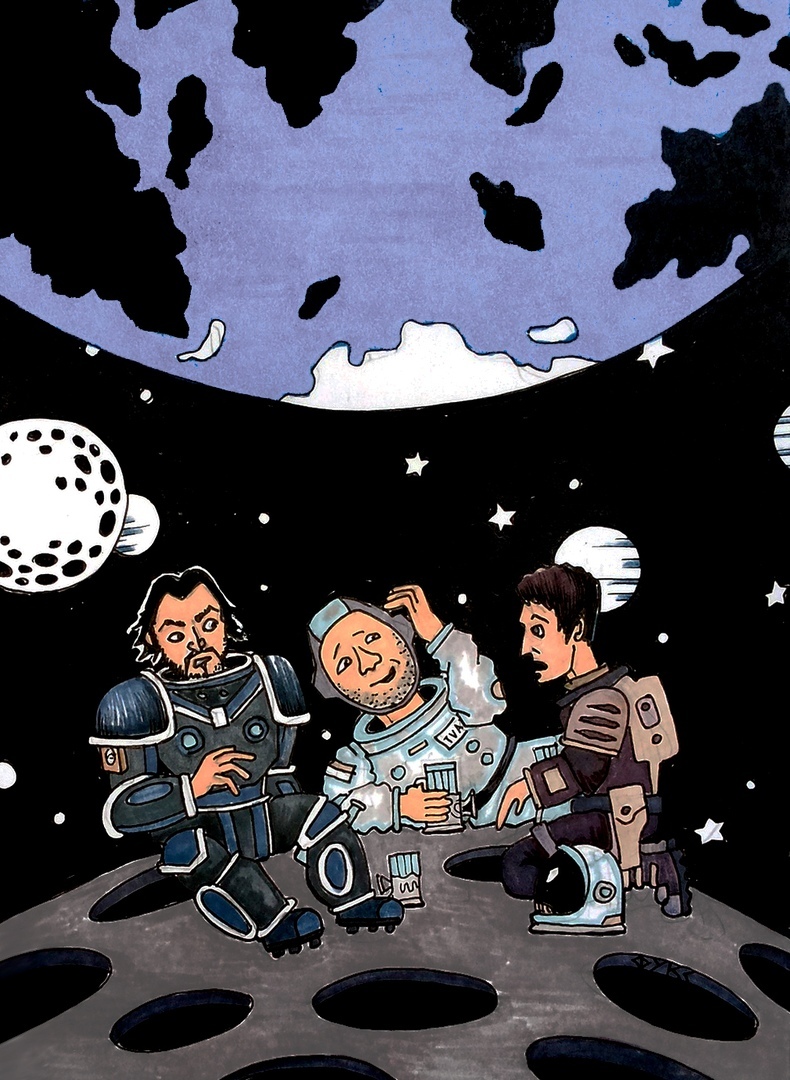 Но вместо этого покоряет бордюр, пересекая незнакомый дворик, и видит трещины земного асфальта сквозь застилающую глаза пелену алкогольного опьянения. А в голове, тоже, своего рода космос. Только не тот, о котором мечтал, читая Булычева или смотря впервые "Звездные войны".