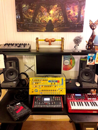 В итоге во всей этой цепочке я выступаю в роли некоего оператора)) Я накручиваю на синтезаторах звук, придумываю музыку, мелодии, аккорды, партии ударных. Забиваю всё это в миди-контроллер. Запускаю и начинается магия)) Далее я контролирую весь процесс, меняю паттерны, меняю звук на ходу, делаю развитие темы, добавляю что-то. Тут уже творчество и импровизация. Компьютер используется только как рекордер для выхода с микшера. Никакой дальнейшей обработки звука не делаю.