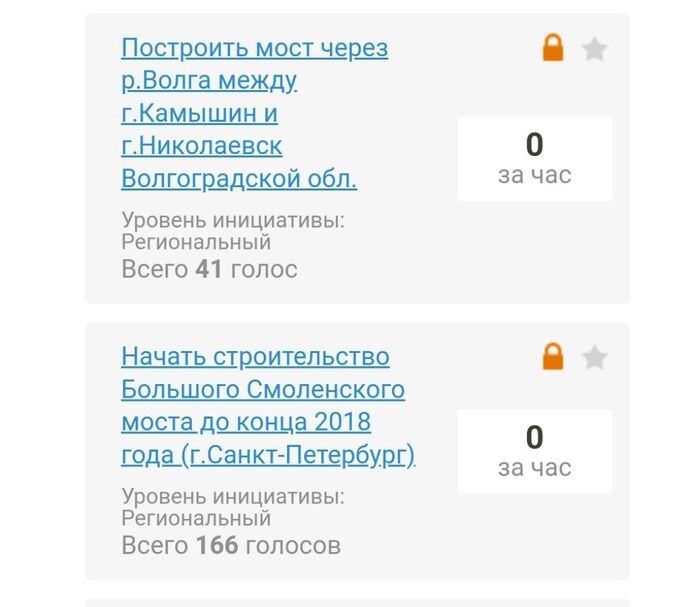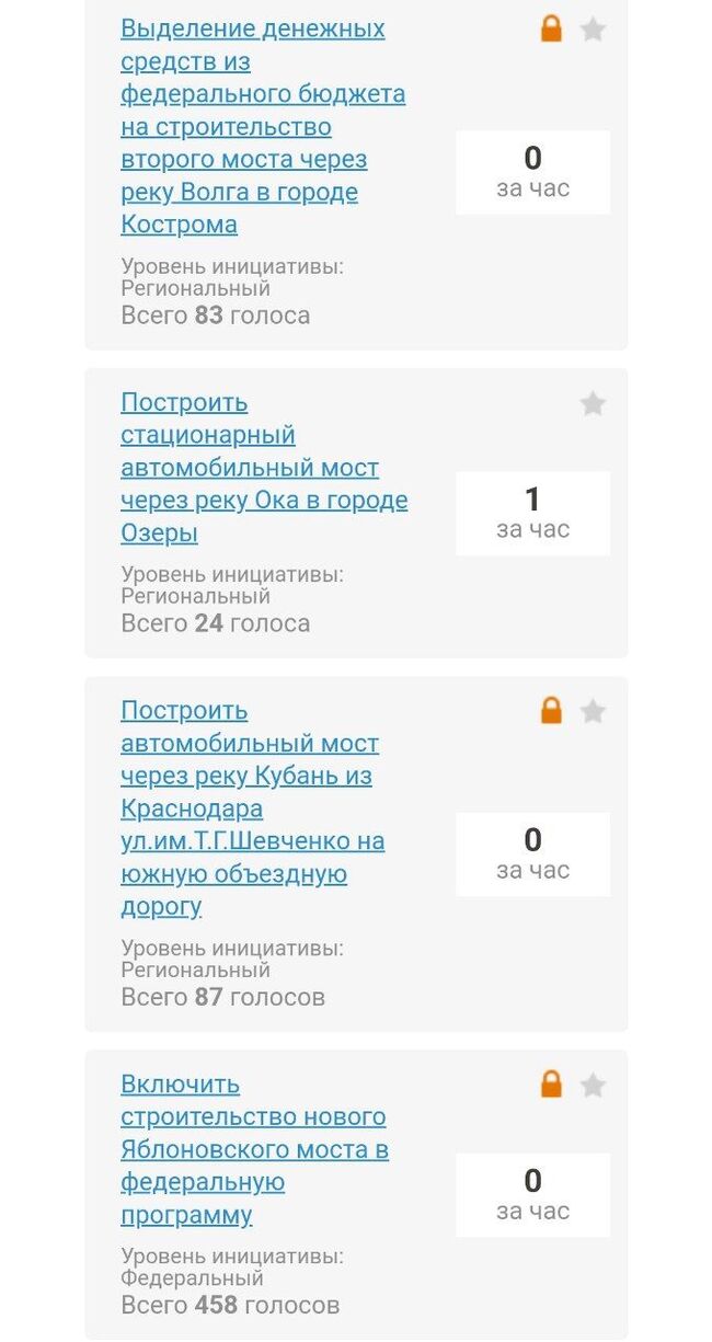 Посмотрите, сколько набрали голосов даже мосты в больших городах.