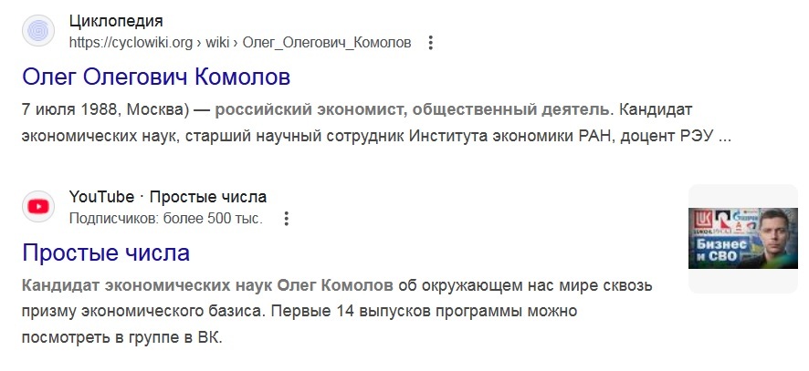 Тг-канал Олега Комолова и проекта «Простые числа»: